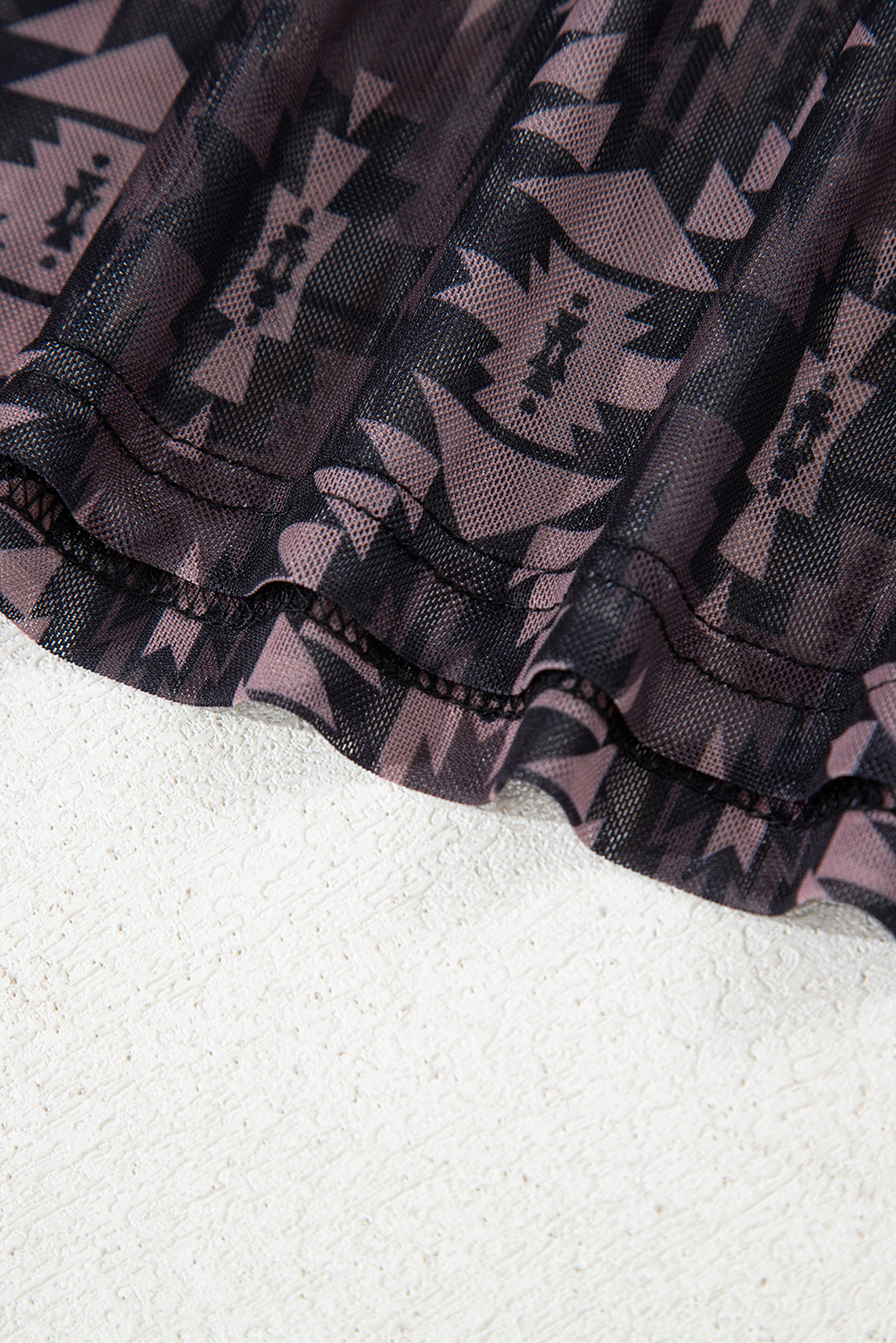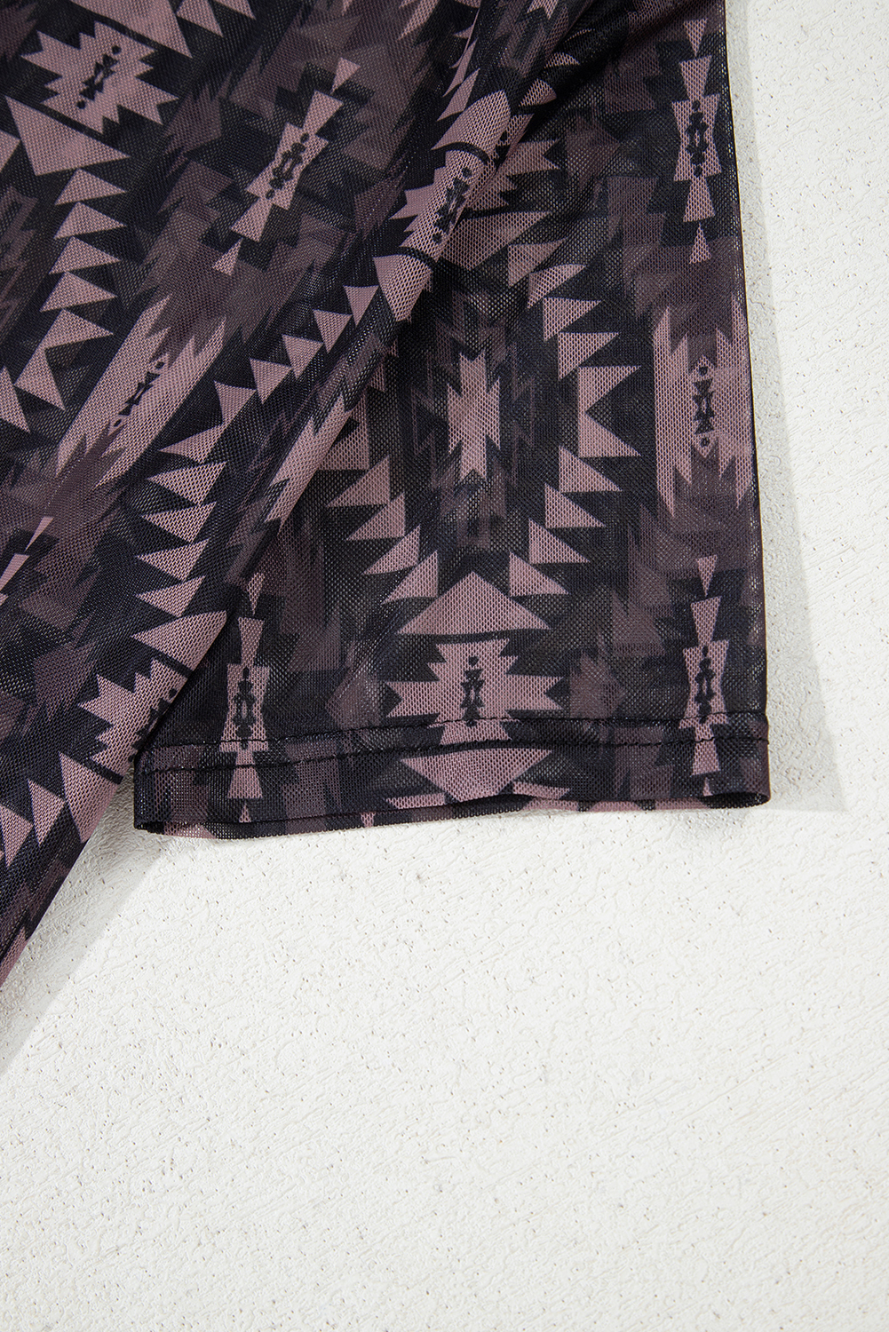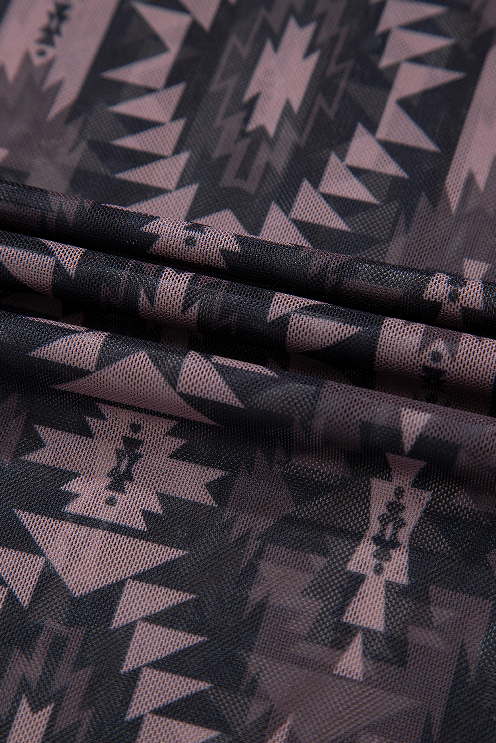 Brown Aztec Print Mock Neck Short Sleeve Mesh T Shirt