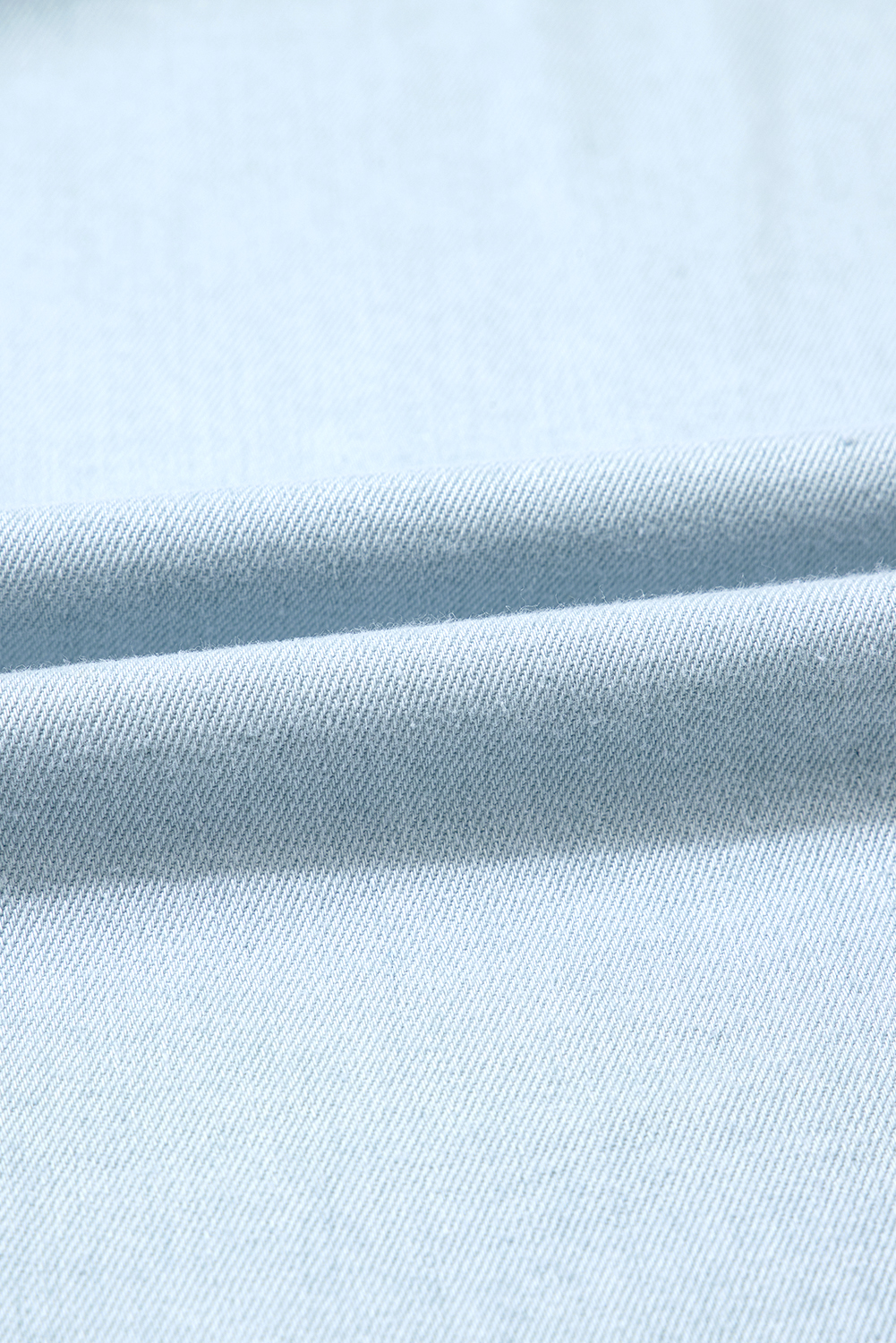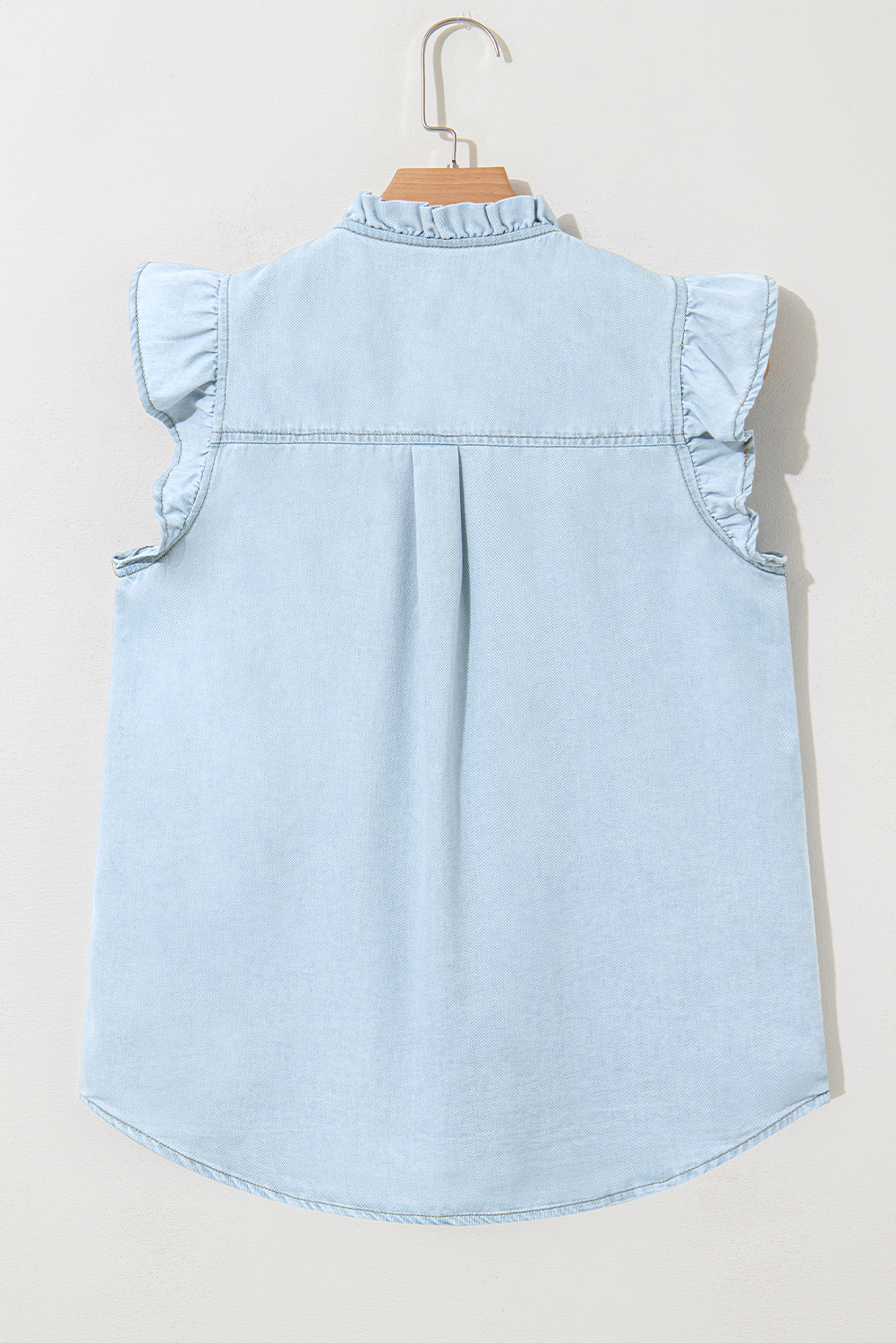 Beau Blue Mineral Wash Frilled Button Up Denim Shirt