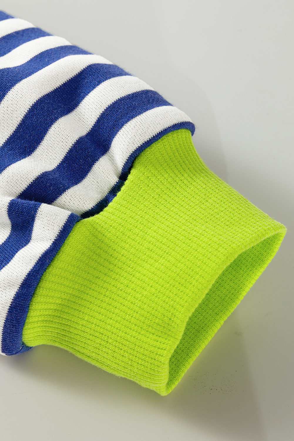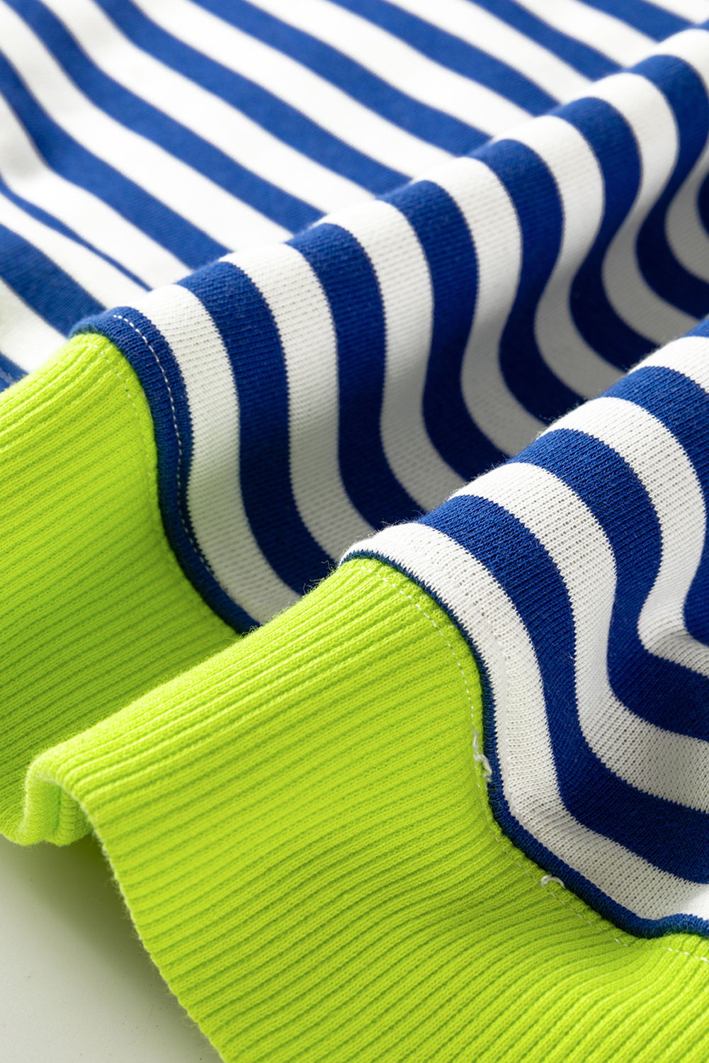 Sky Blue Stripe Striped Contrast Ribbed Trim Crossed Stitch Drop Shoulder Sweatshirt