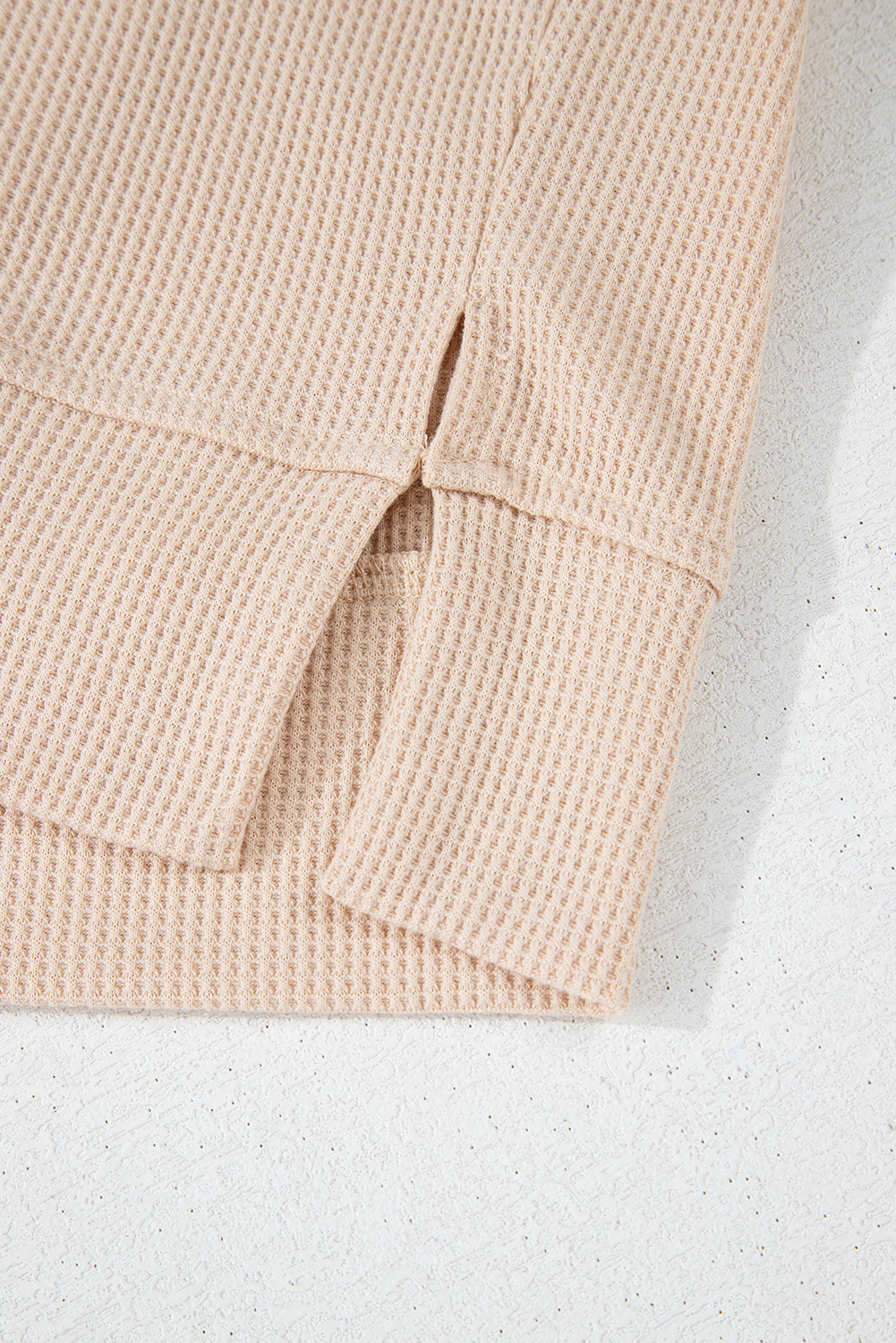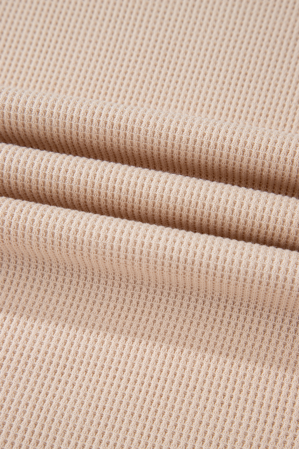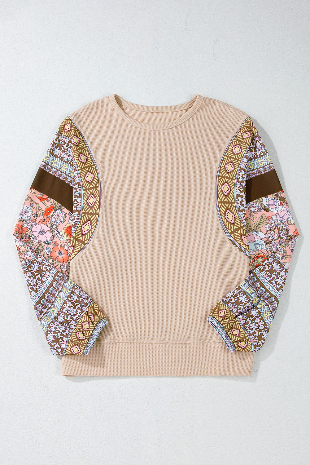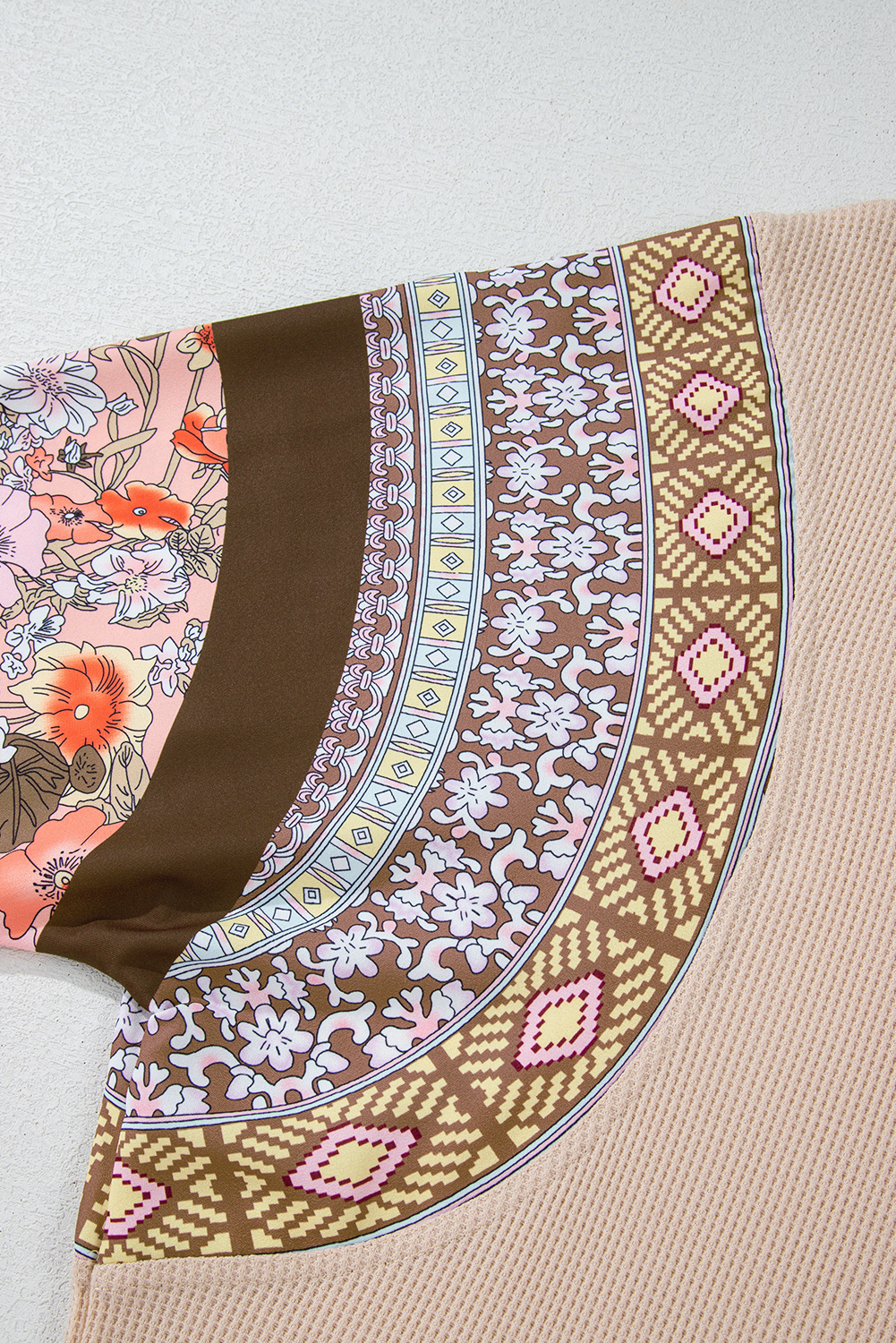 Parchment Contrast Floral Patchwork Puff Sleeve Waffle Knit Top