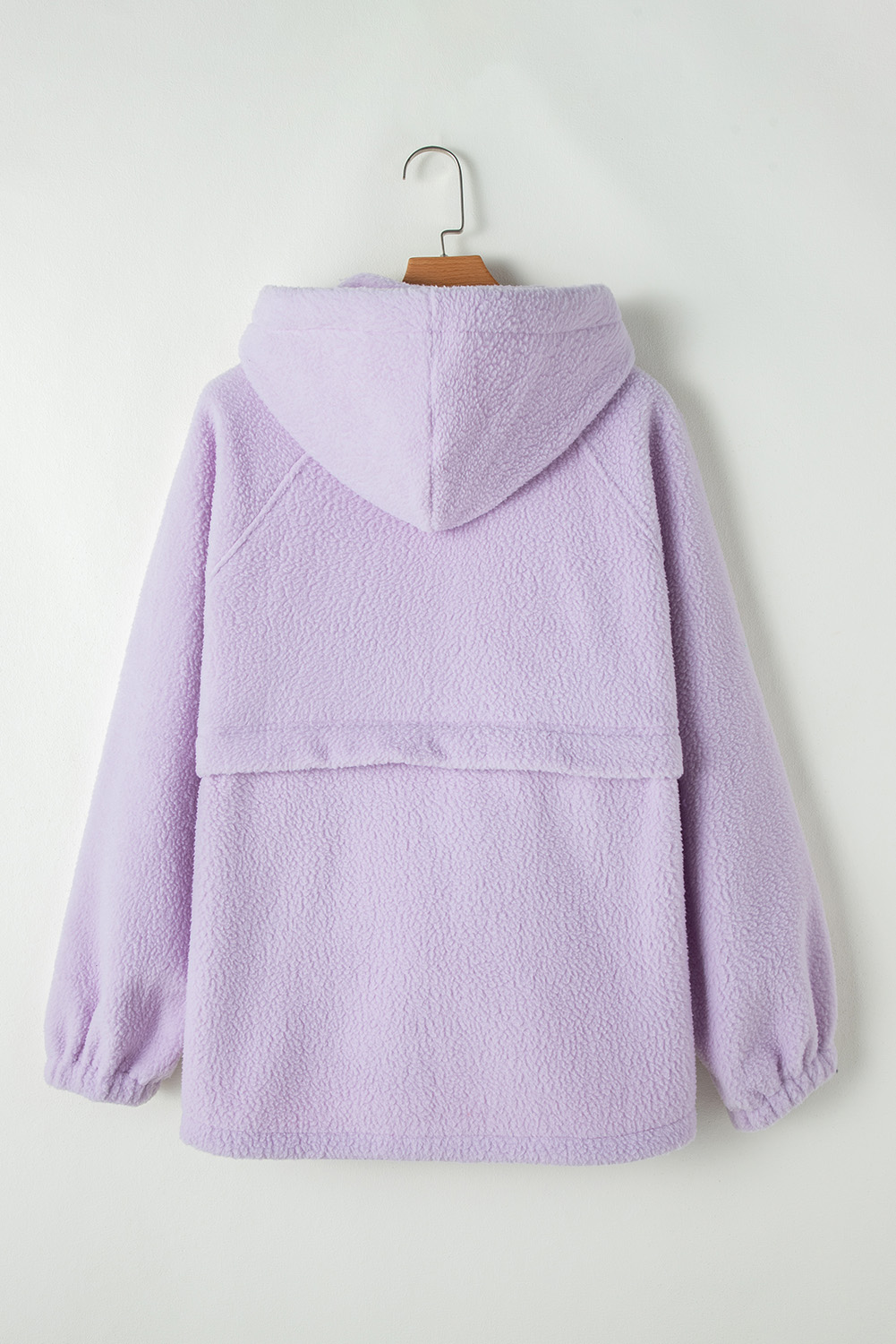 Lavendula Zipped Patch Pocket Fuzzy Drawstring Hoodie