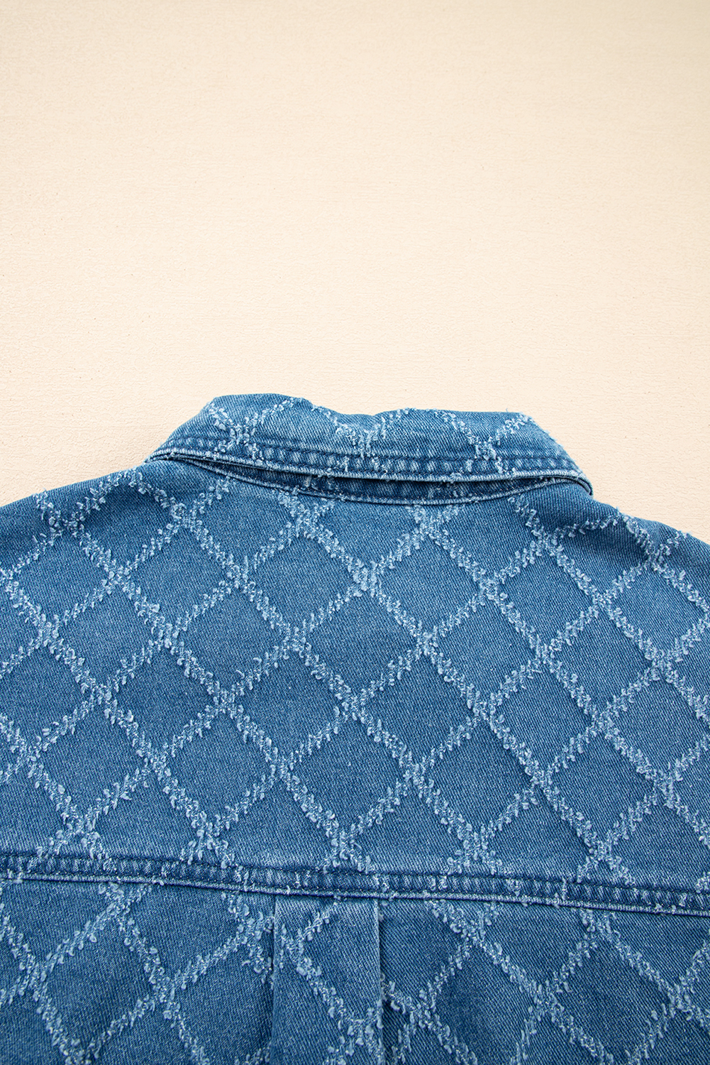 Dusk Blue Checkered Textured Short Sleeve Patched Pocket Denim Shirt