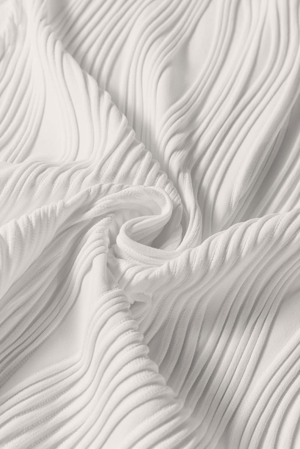 White Solid Color Wavy Textured Round Neck Tank Top