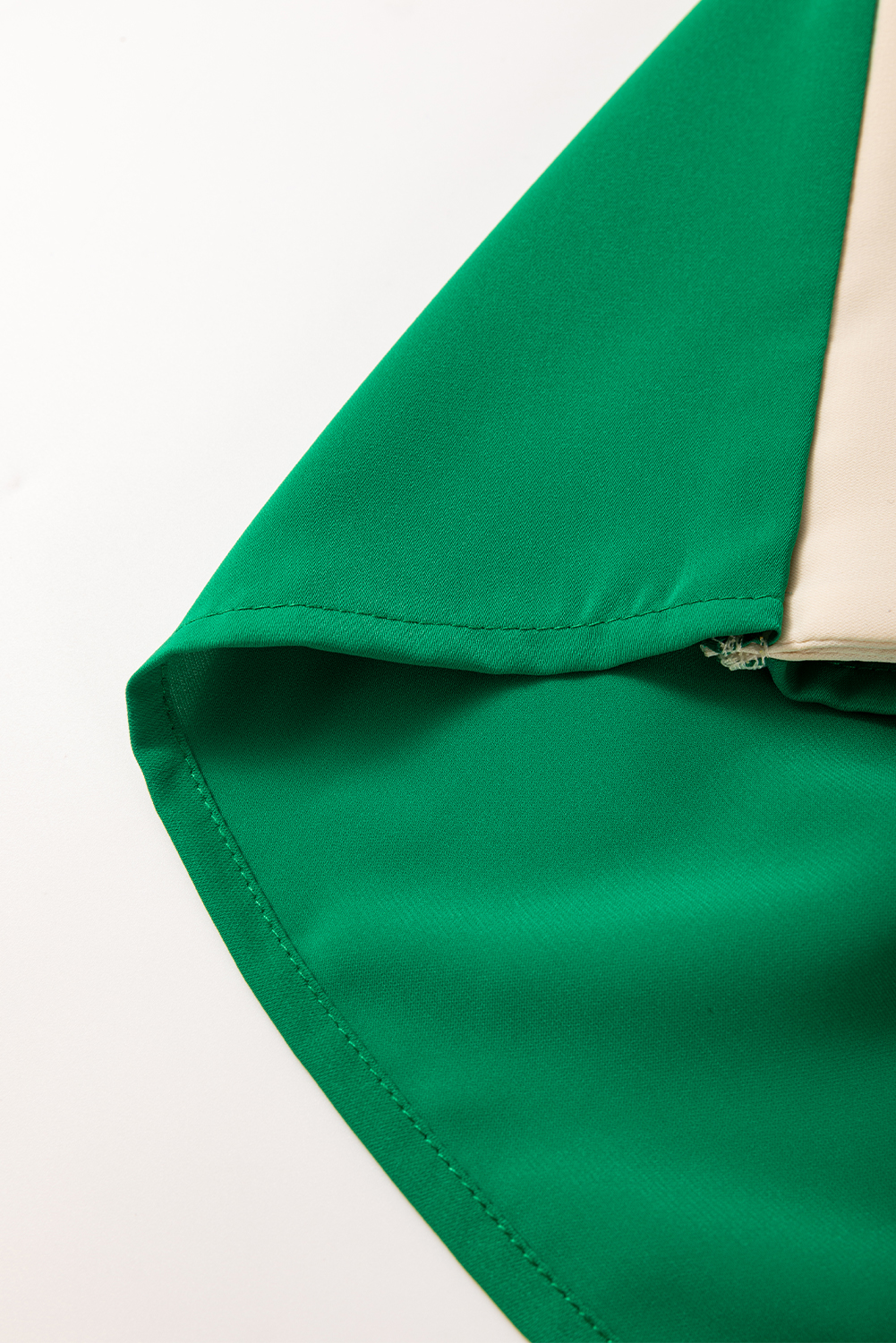 Green Oversized Color Block Boat Neck Tunic Blouse