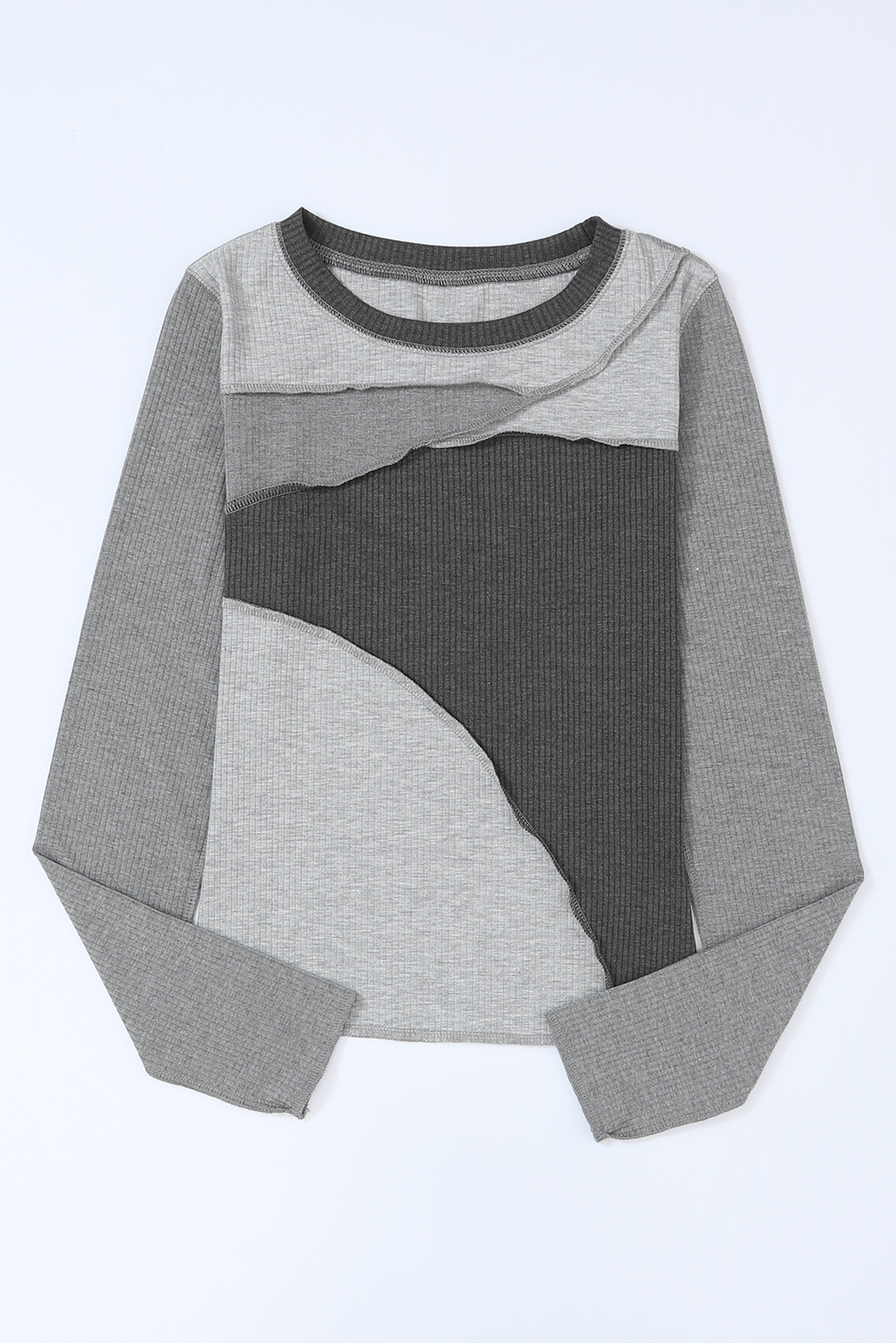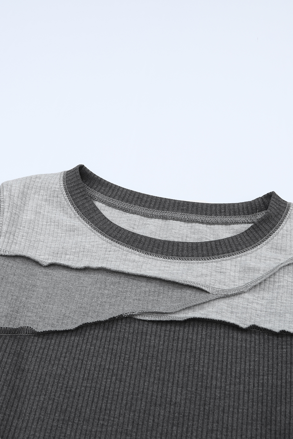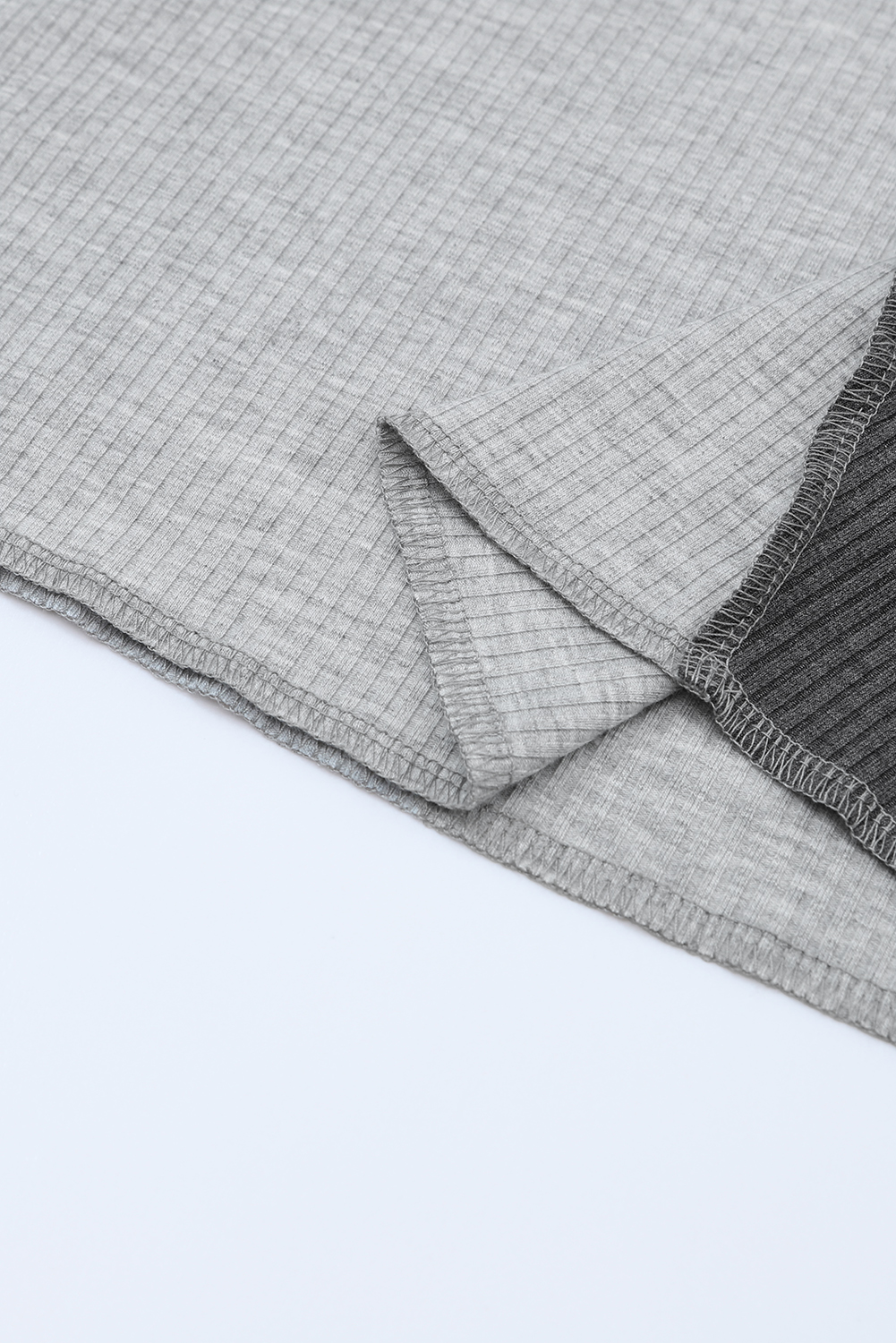 Gray Expose Seam Color Block Ribbed Knit Top