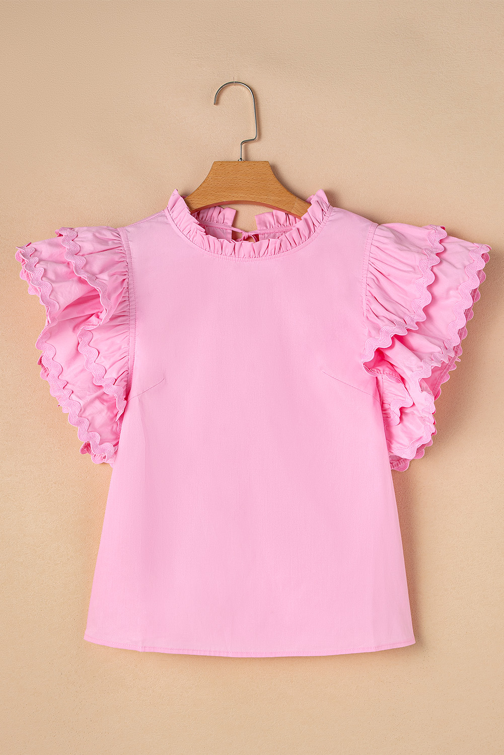 Bonbon Ricrac Ruffled Sleeve Frilled Collar Blouse