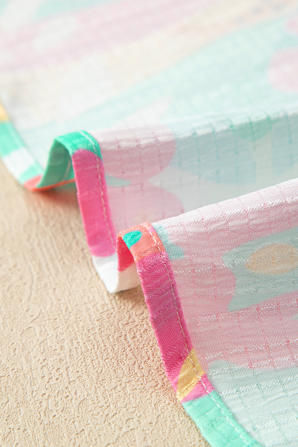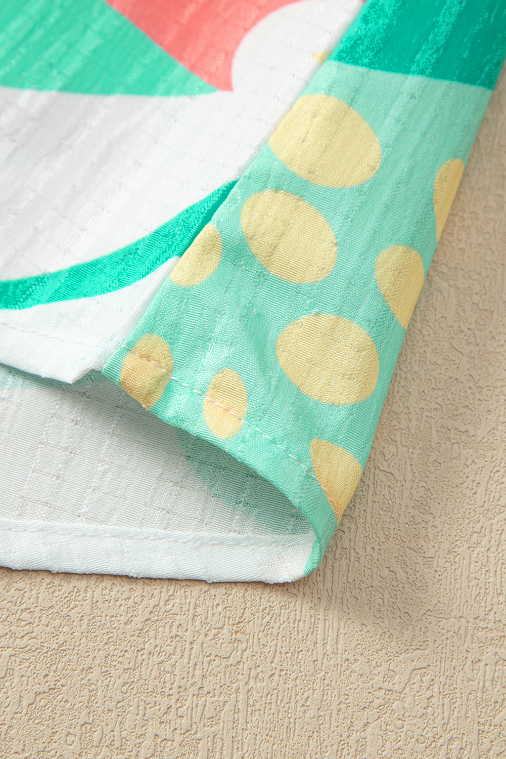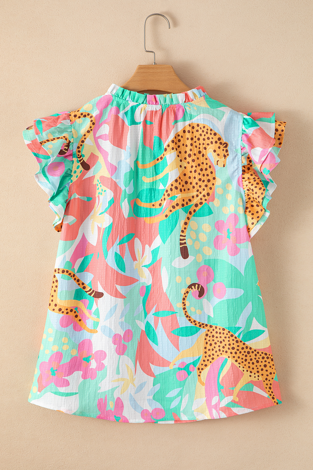 Green Frilly Ruffle Tie Split Neck Summer Floral Blouse