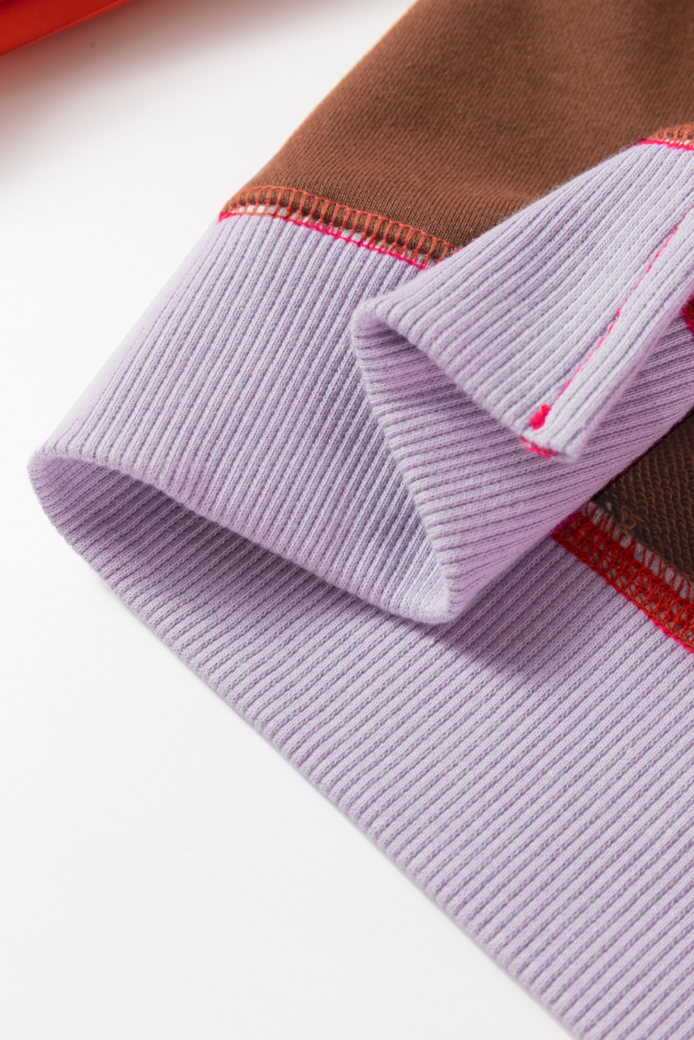 Orange Color Block Side Slits Raglan Sleeve Loose Fit Top