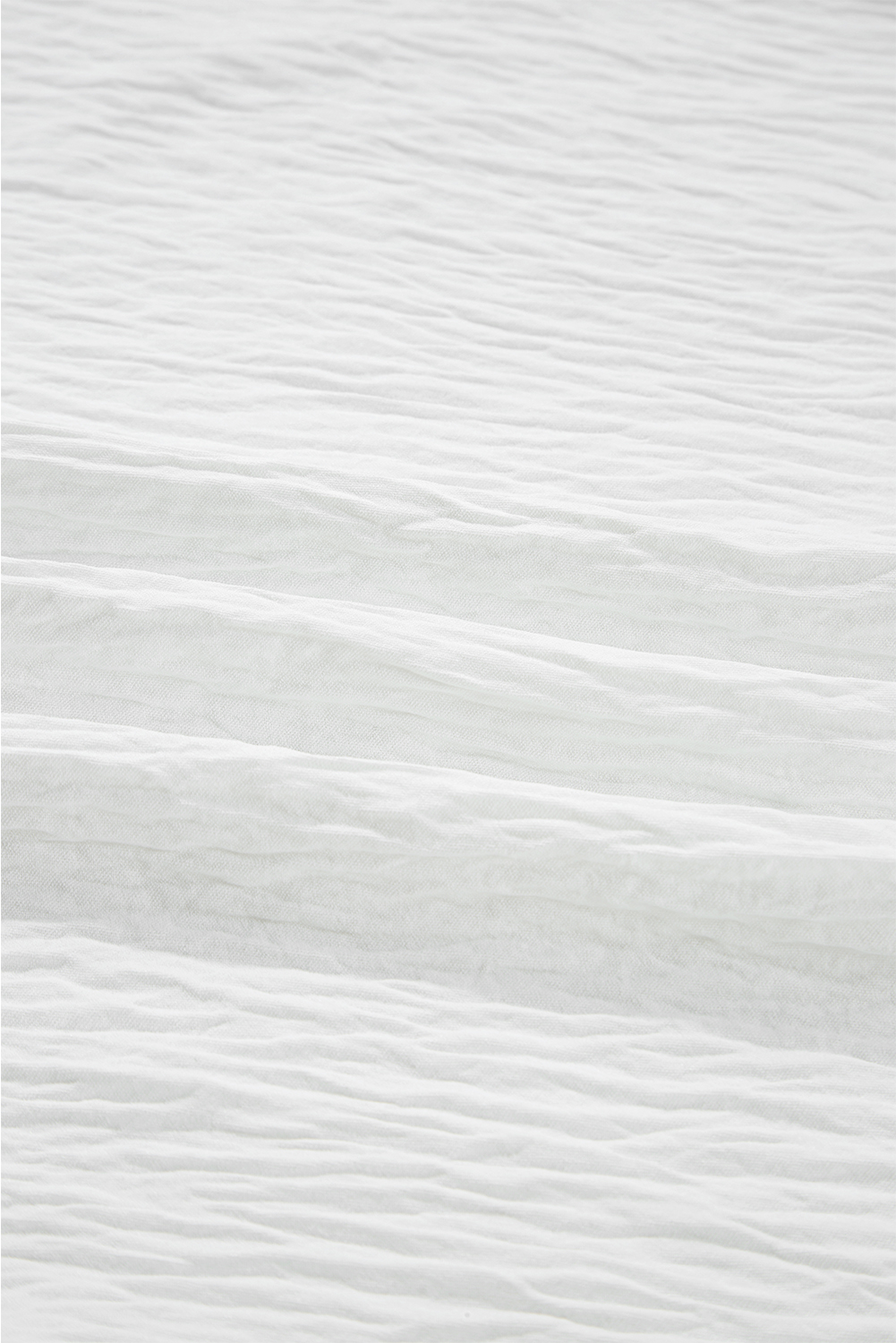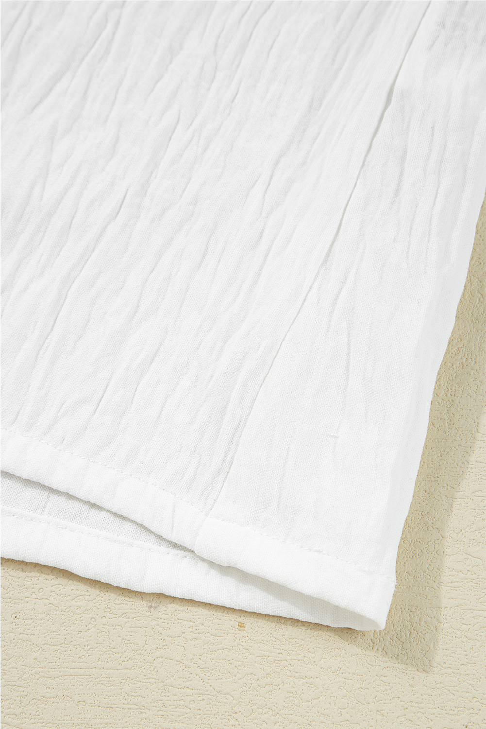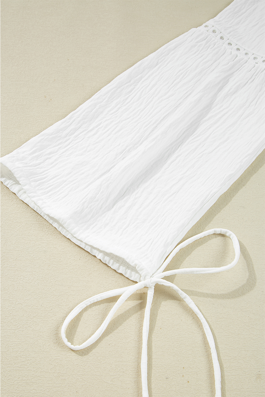 White Drawstring Lace Detail Puff Sleeve Split Neck Spring Fall Blouse