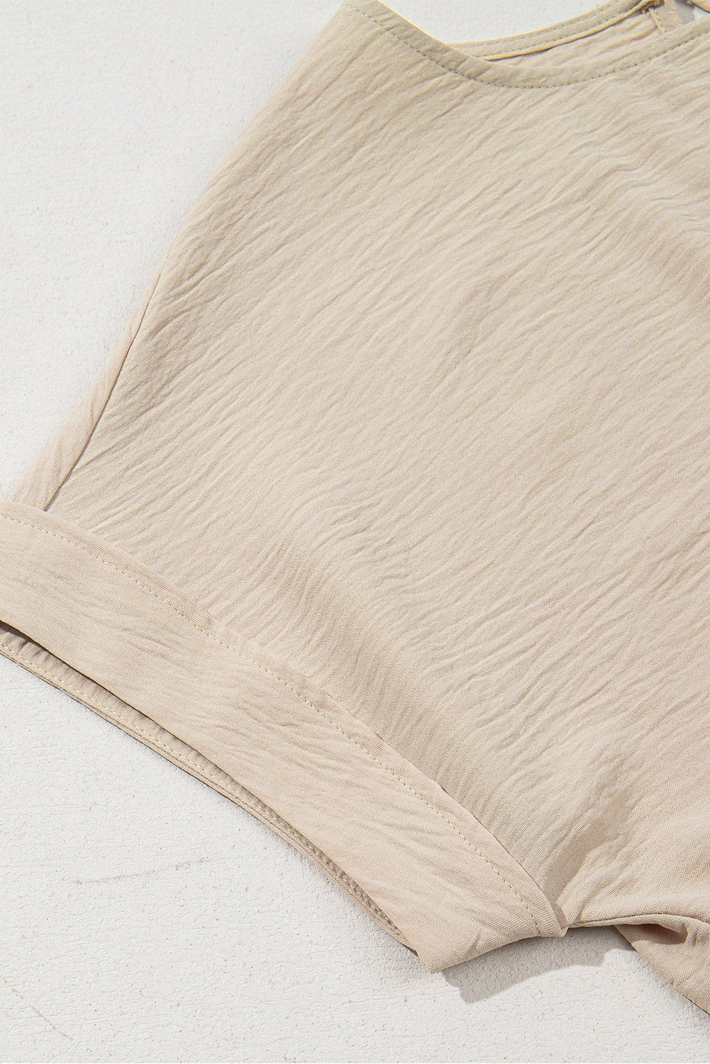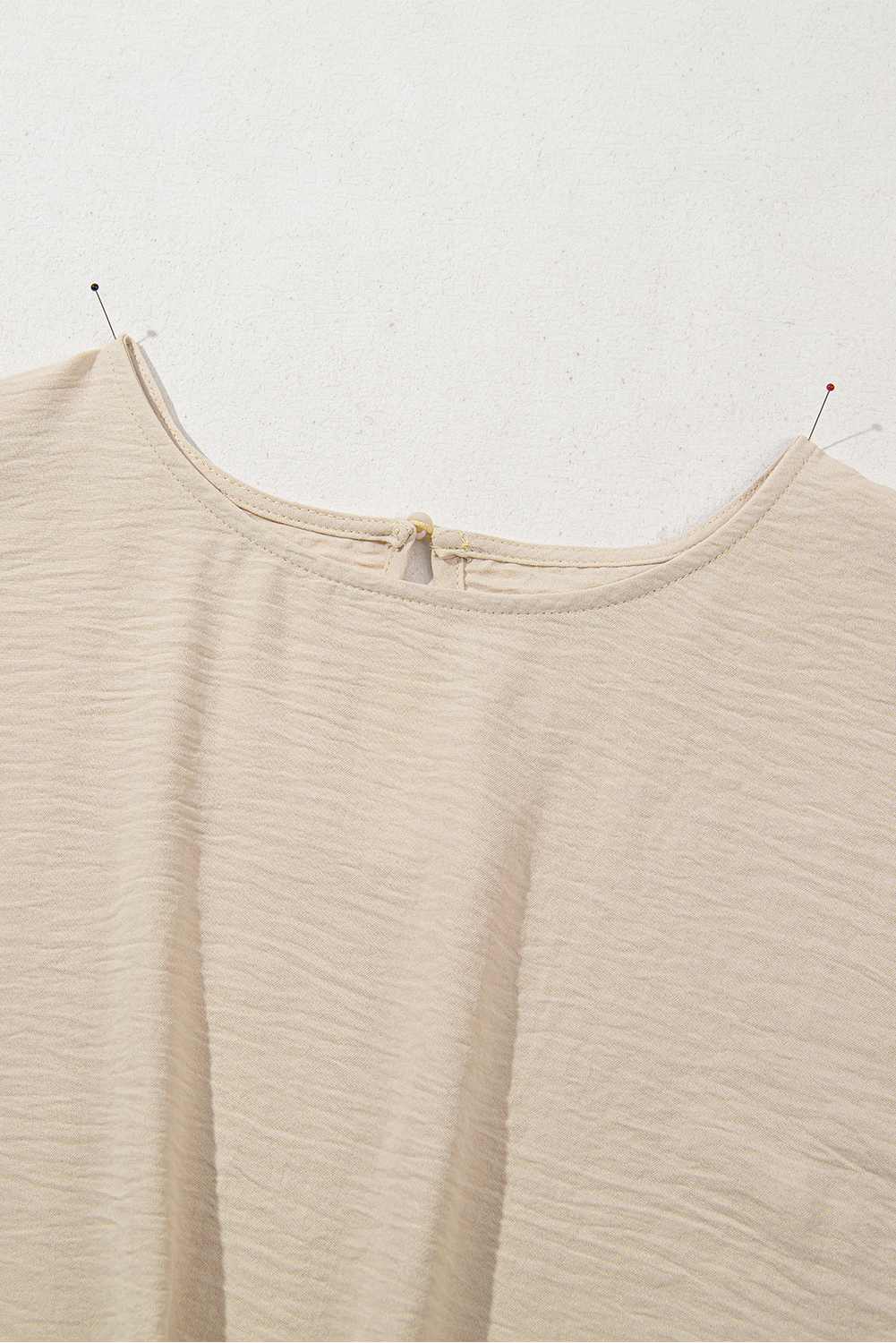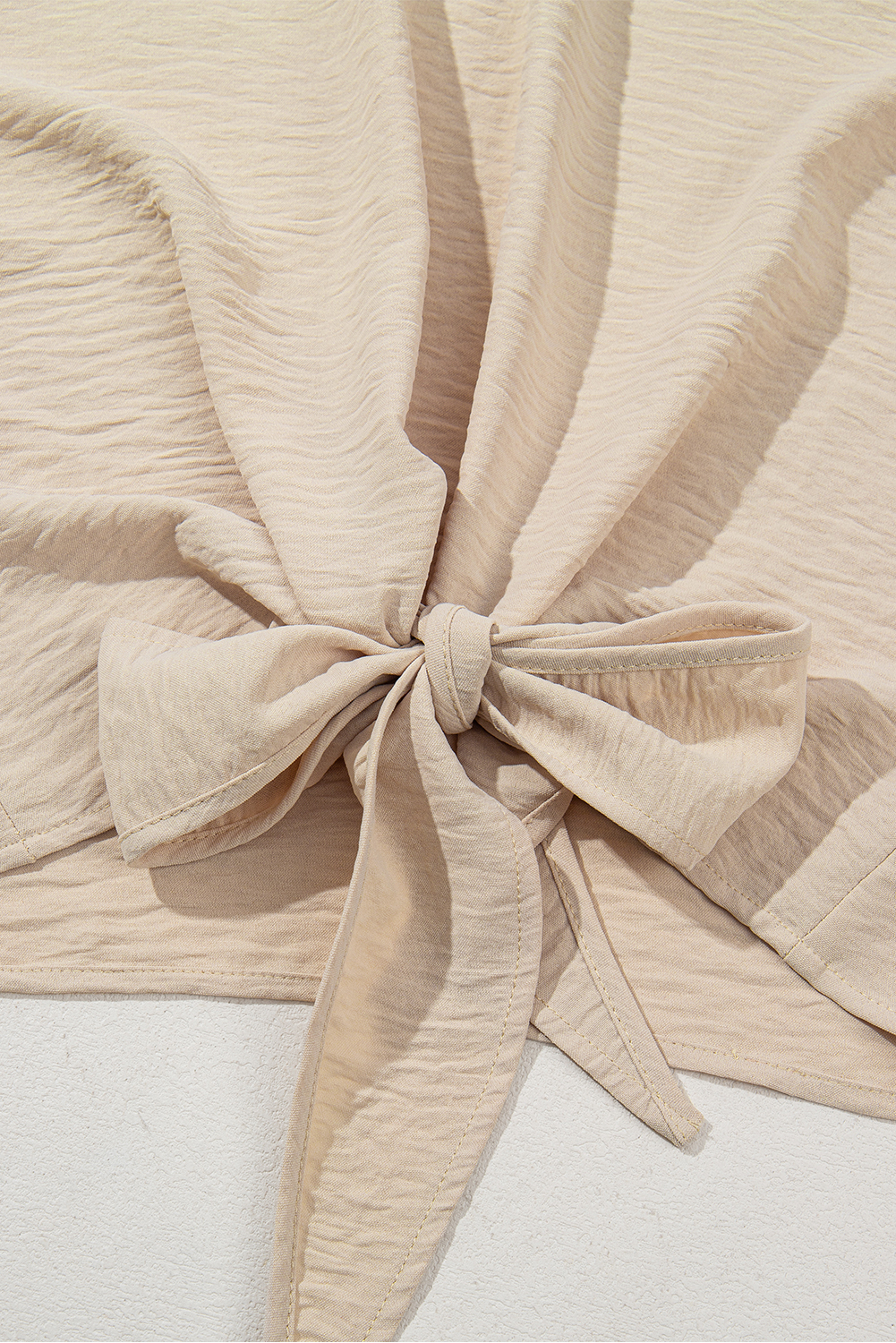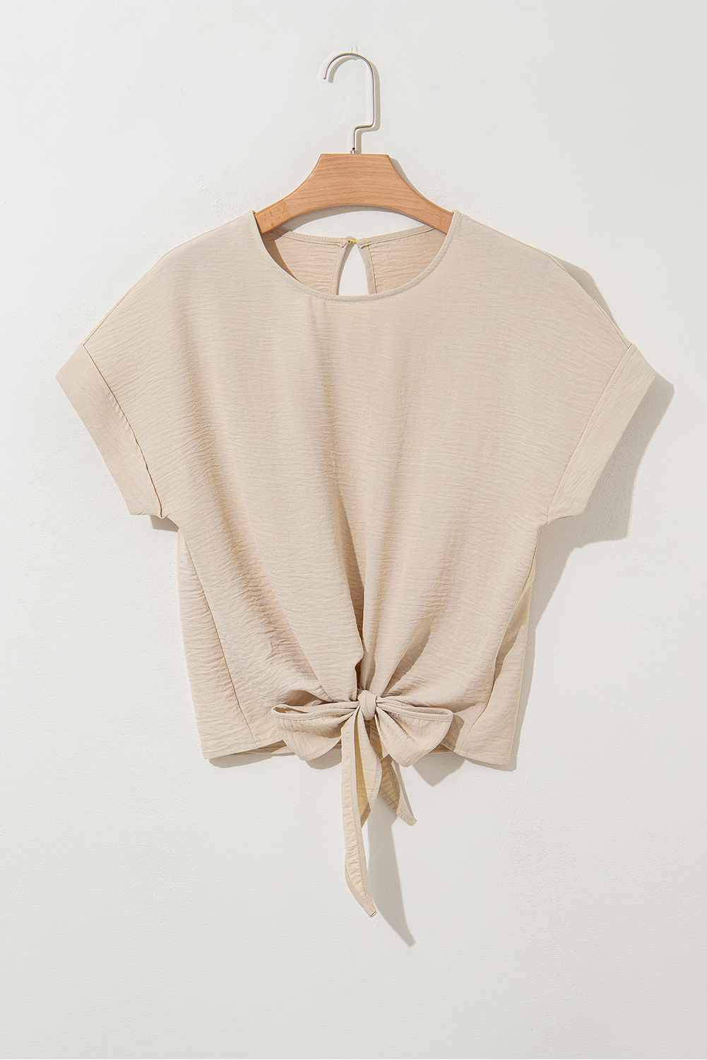 Parchment Solid Color Knotted Hem Short Sleeve Blouse