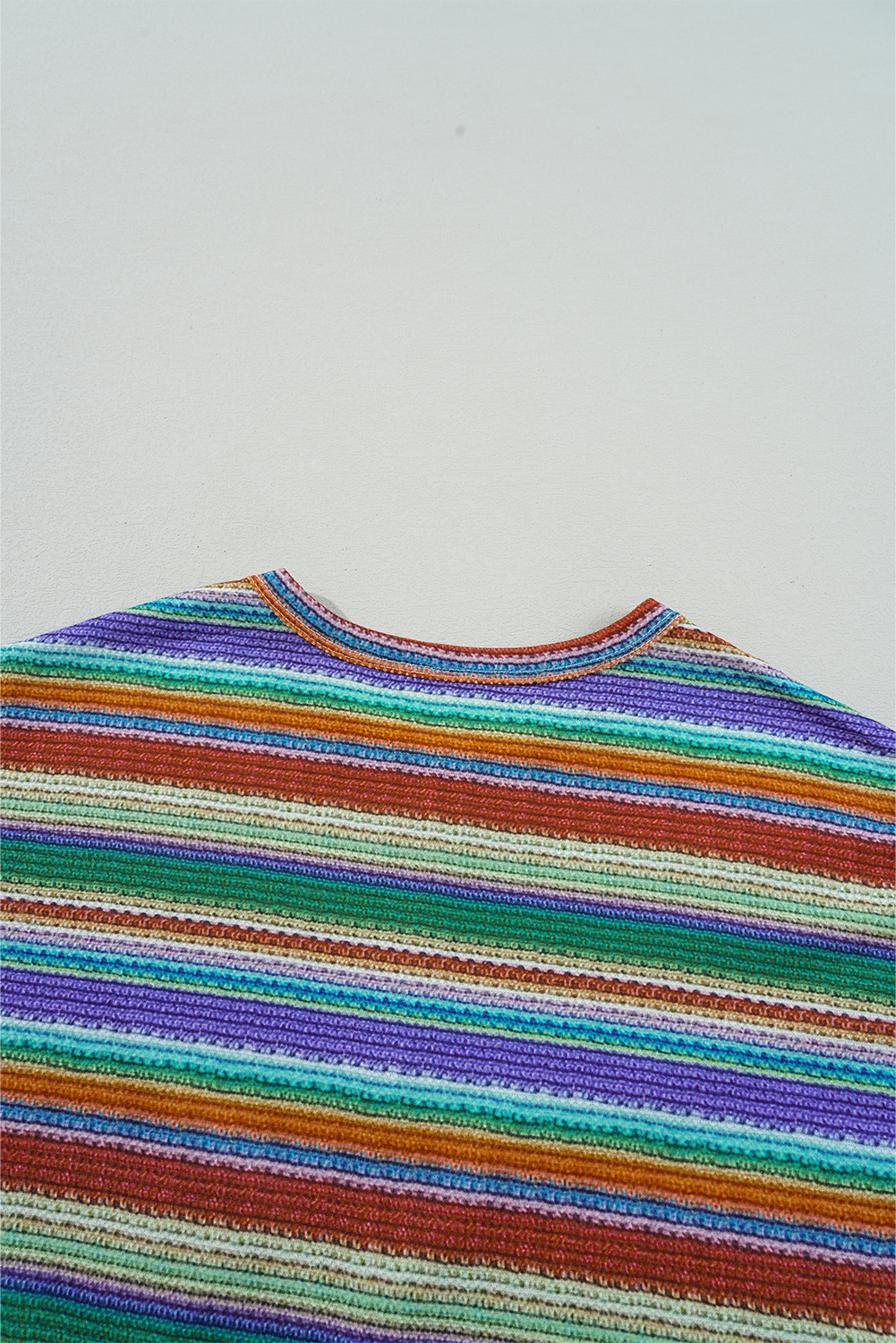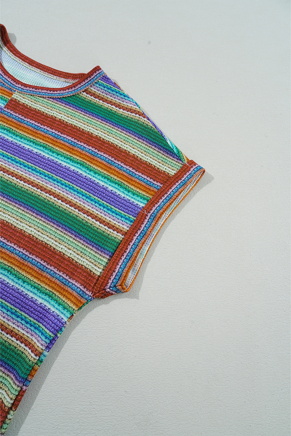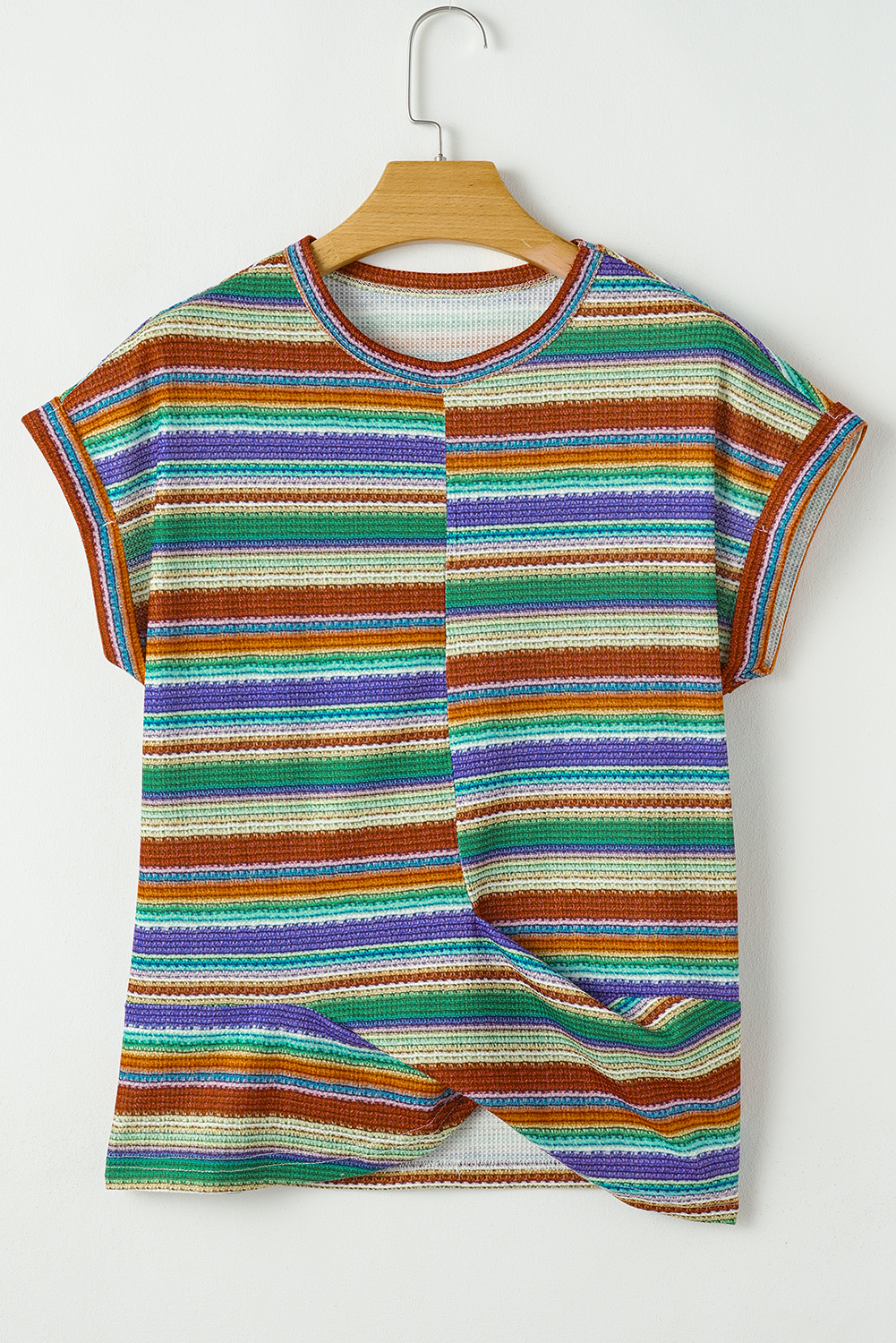 Multicolour Striped Pattern Twist Hem Short Sleeve Top