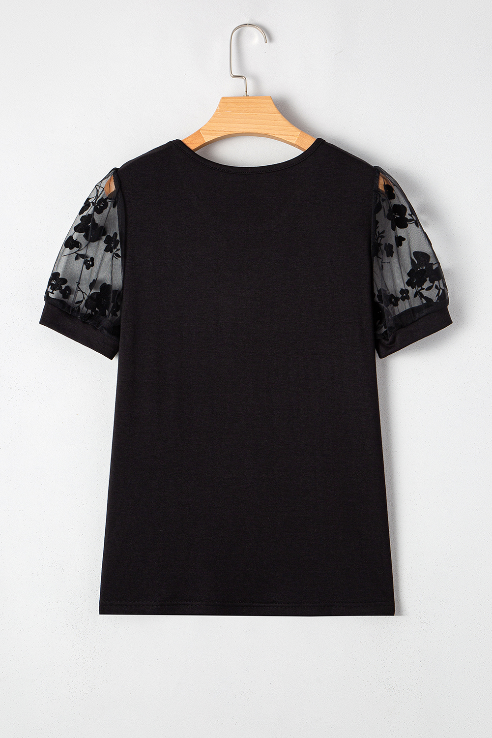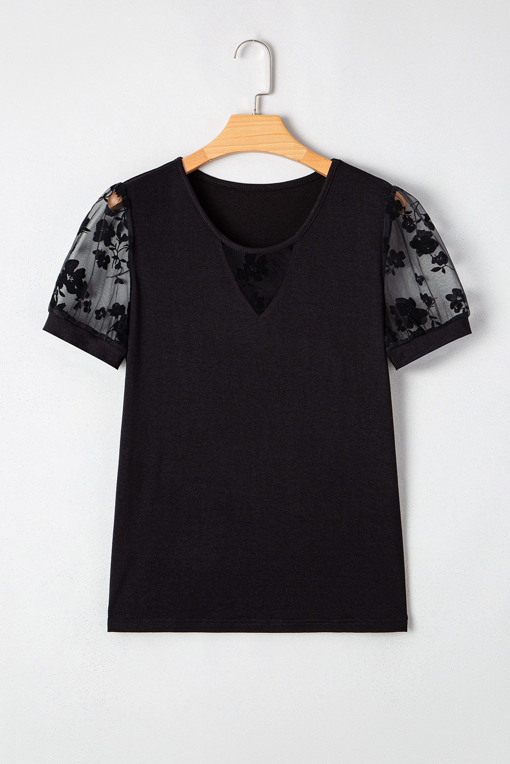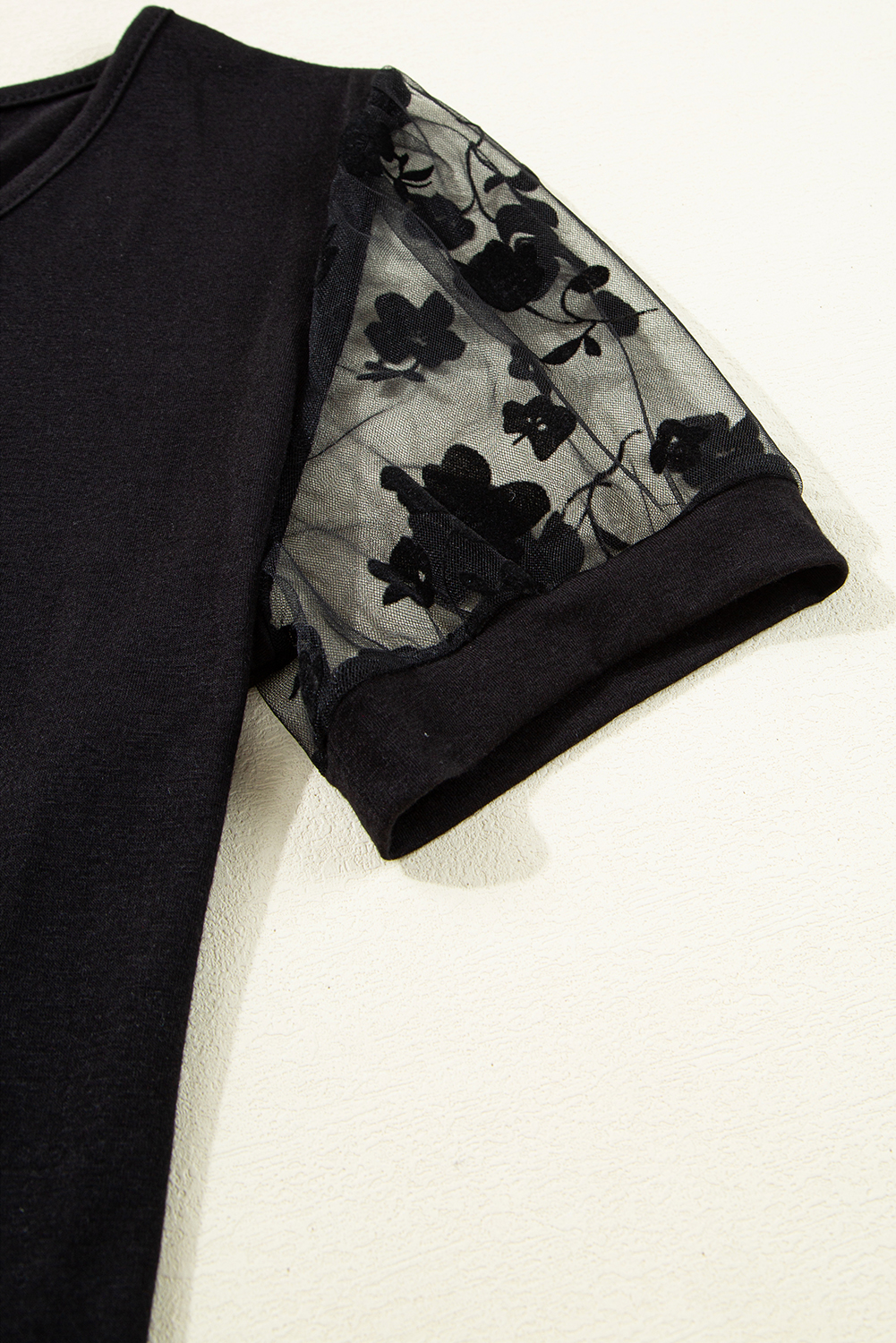 Black Flora Lace Patchwork Crew Neck T Shirt