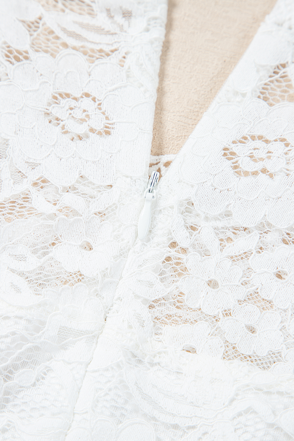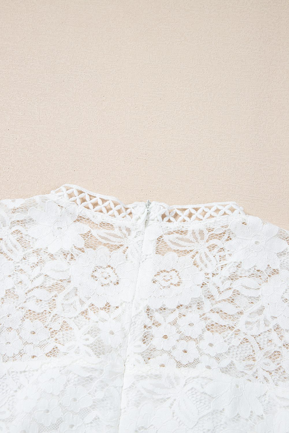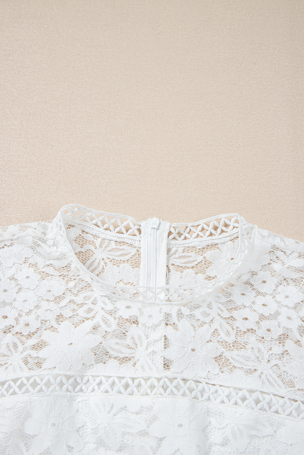 White Short Sleeve Scalloped Floral Lace Peplum Blouse