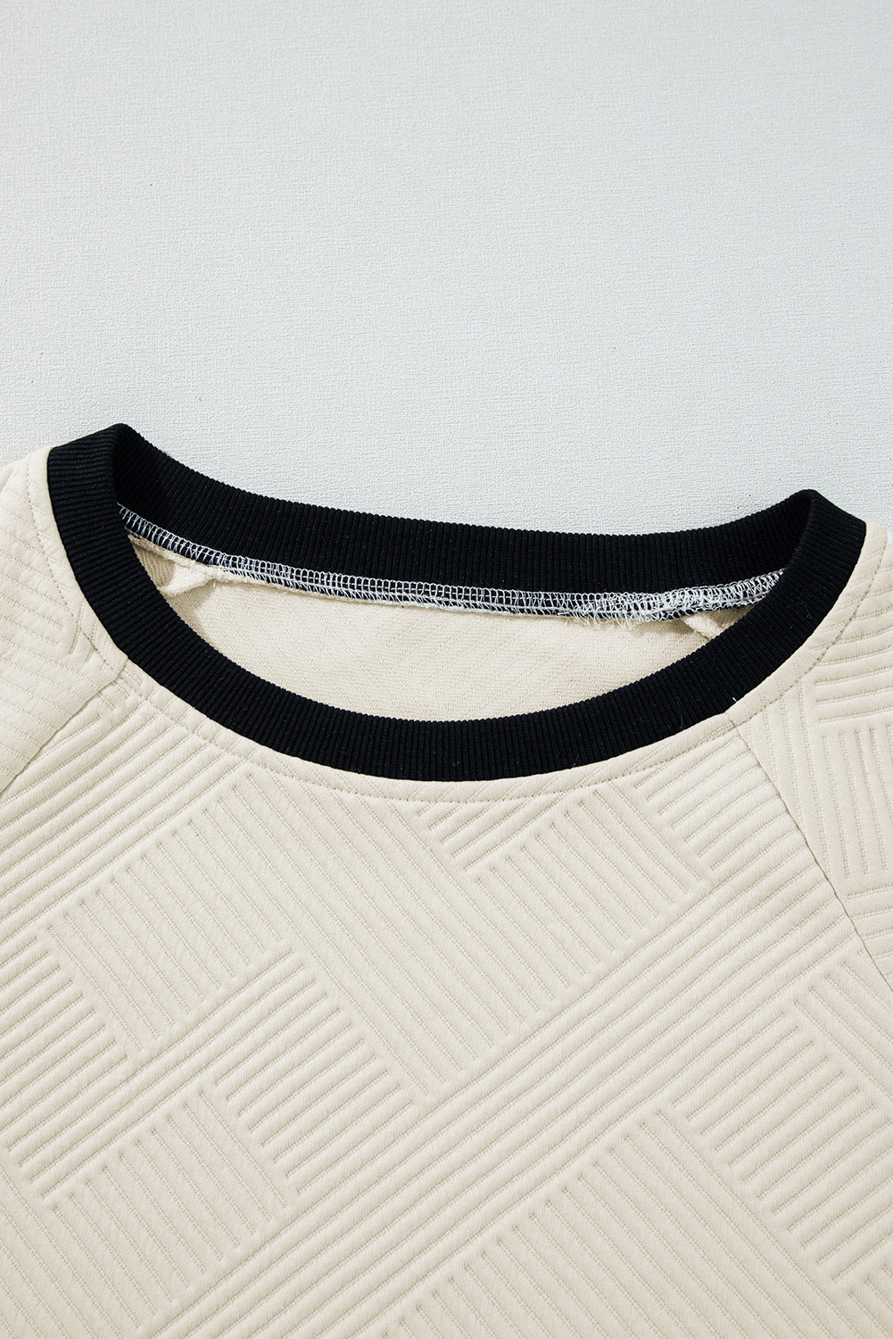 Jet Stream Color Block Edge Raglan Sleeve Crew Neck Textured Top