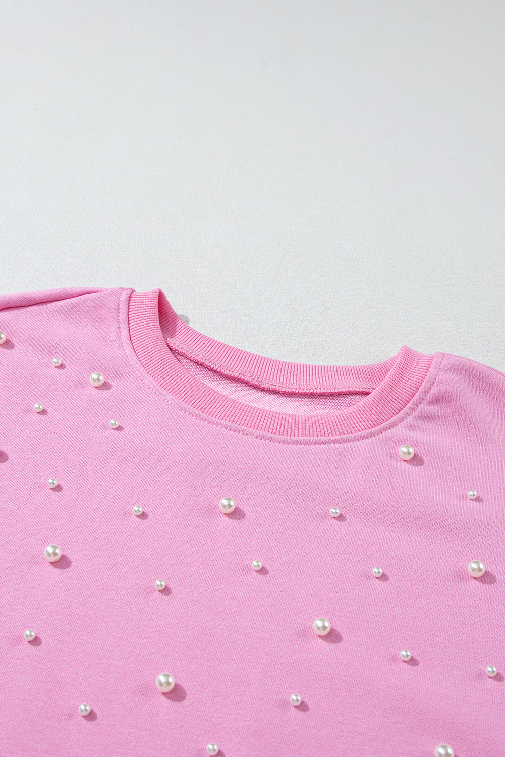 Bonbon Pearl Detail Ribbed Crew Neck Sweatshirt