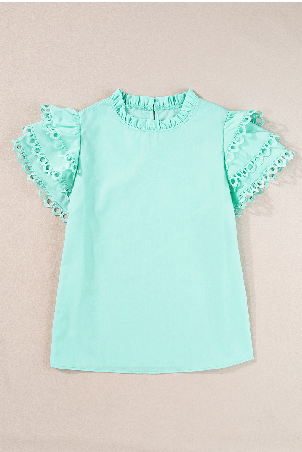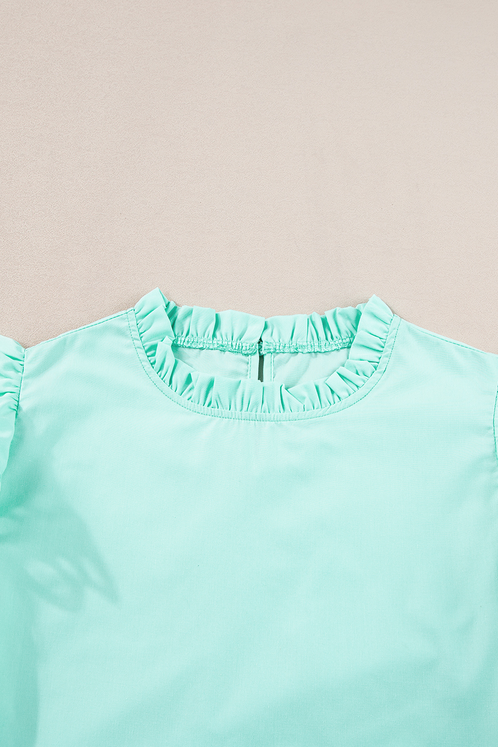 Mint Green Layered Ric Rac Cap Sleeve Frilled Neck Blouse