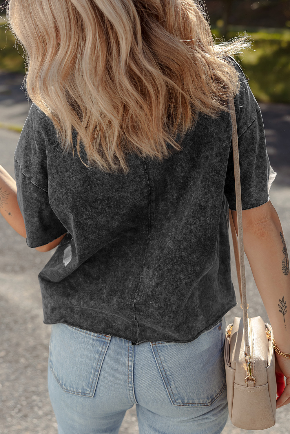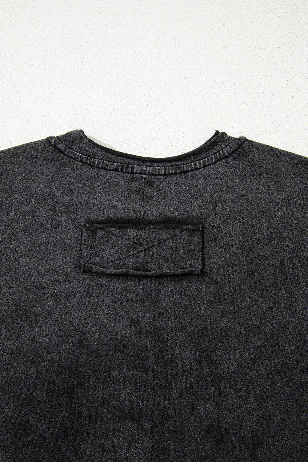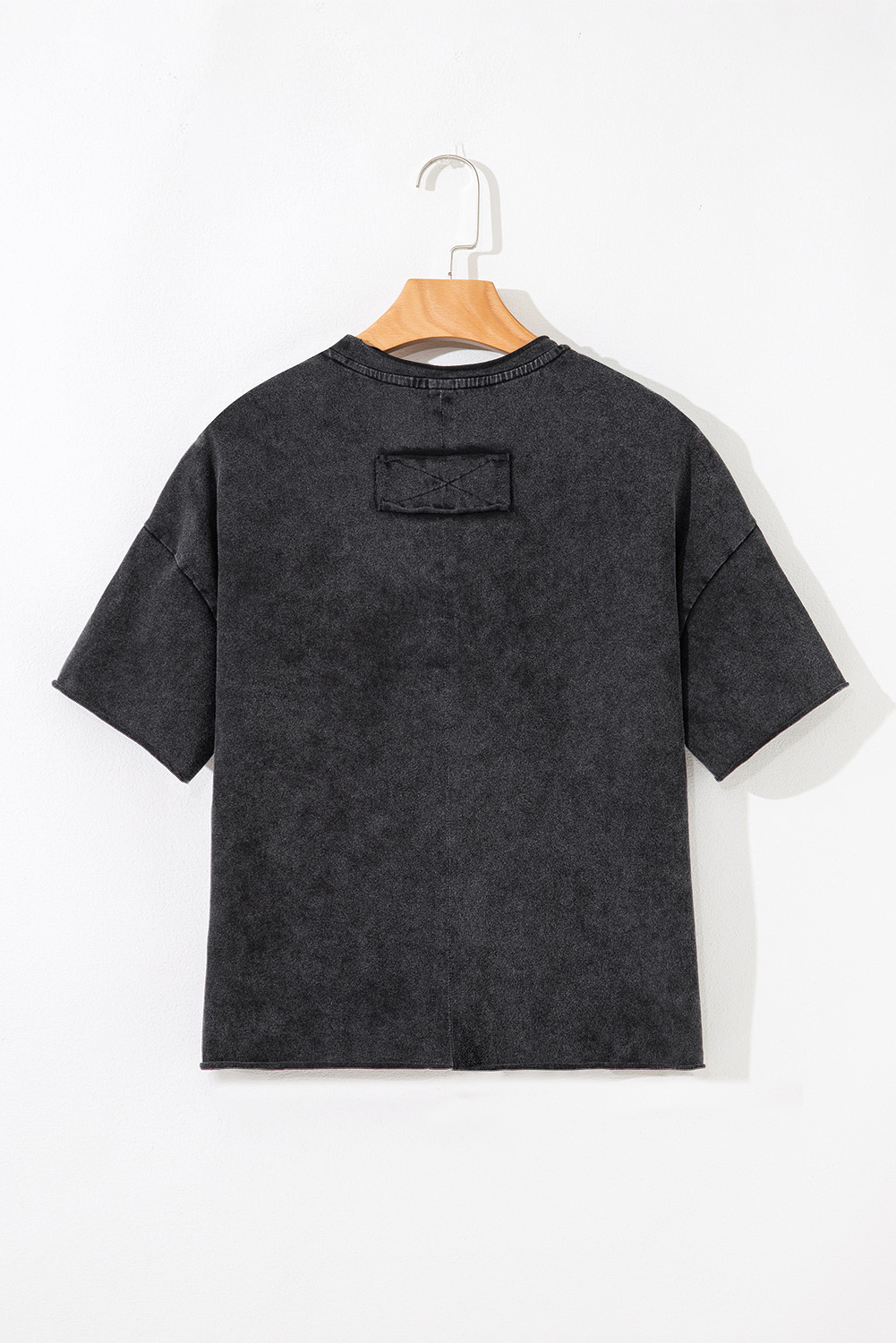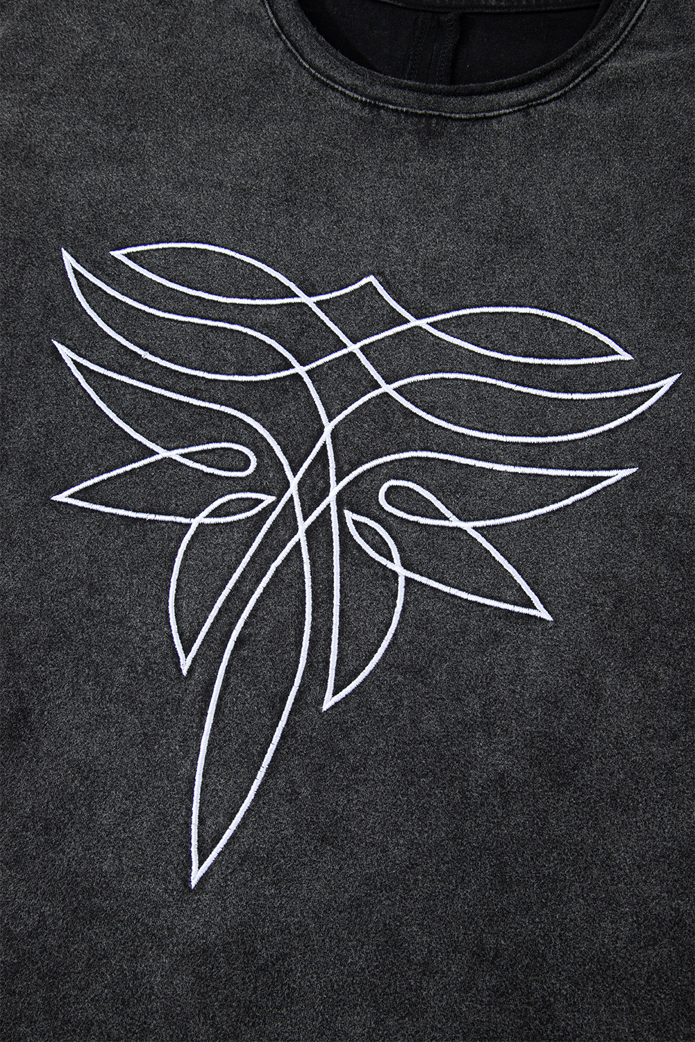Black Floral Embroidered Mineral Wash Crew Neck T Shirt