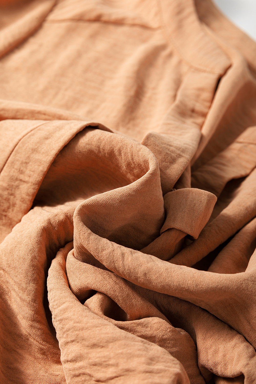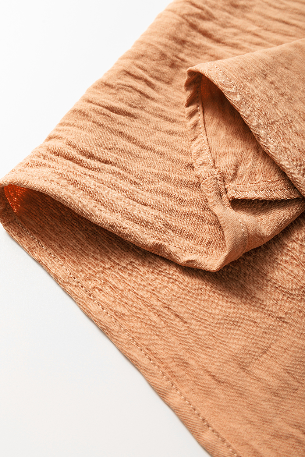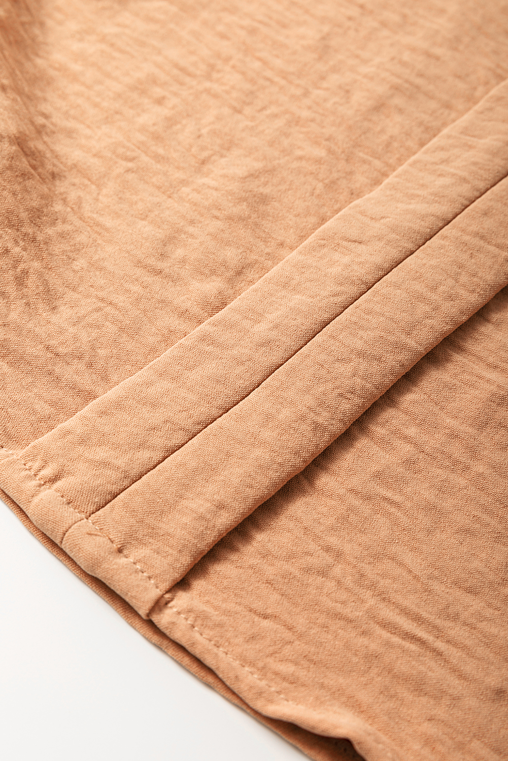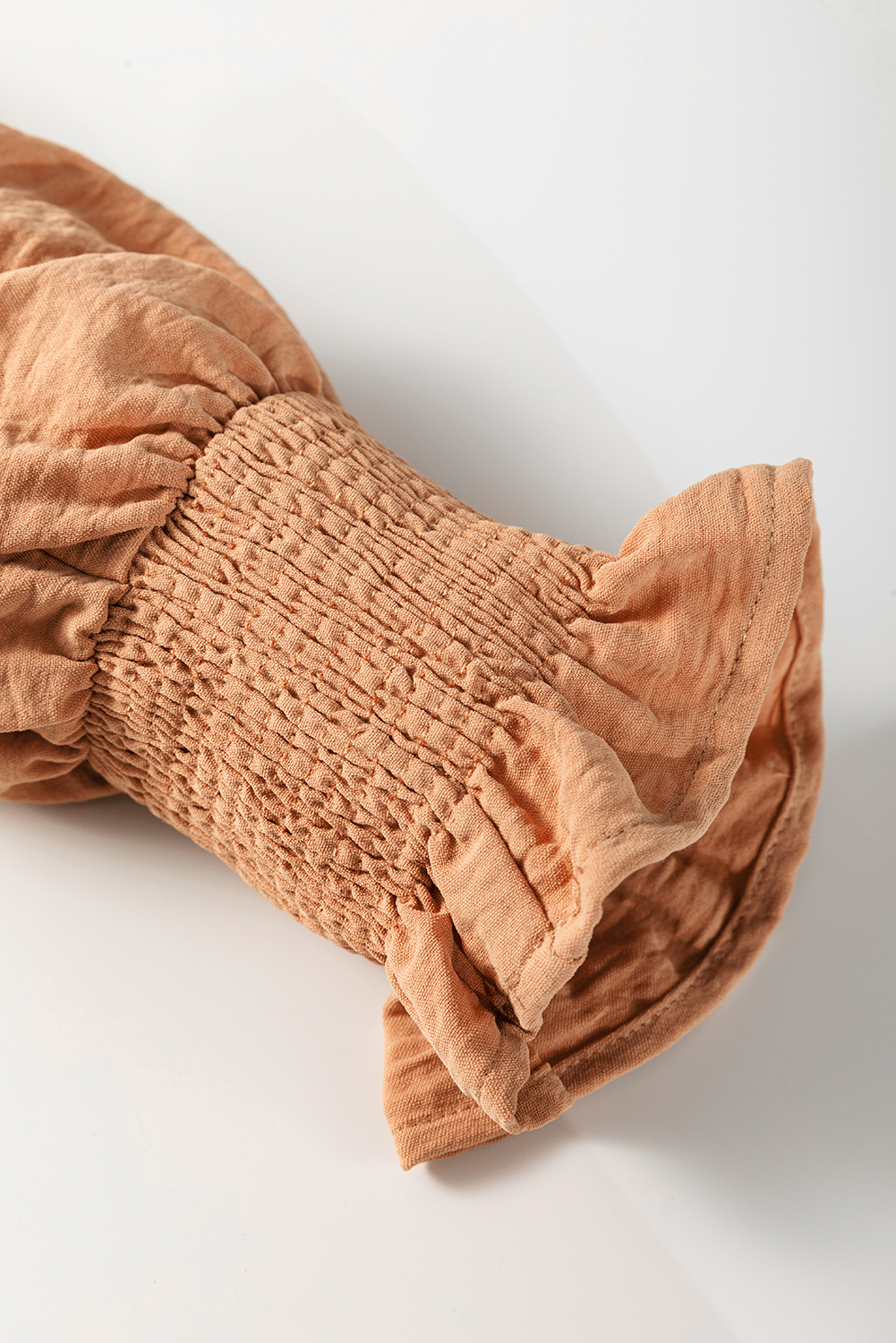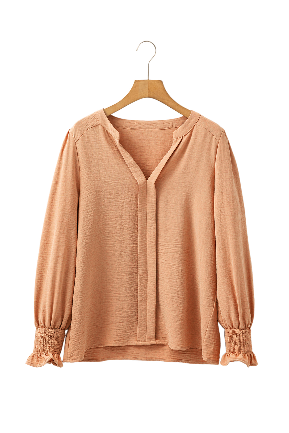 Straw Yellow Solid Color Shirred Cuff Notch V Neck Blouse