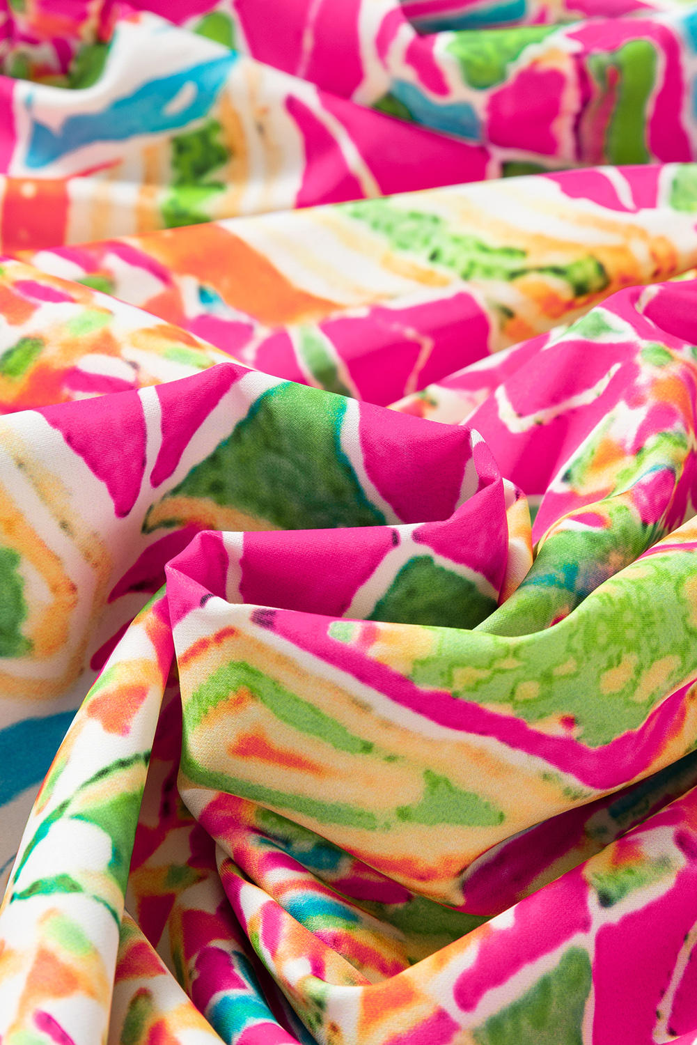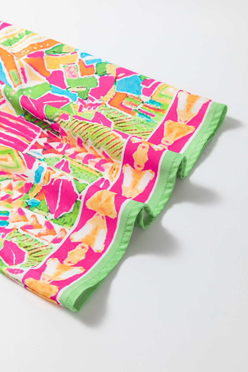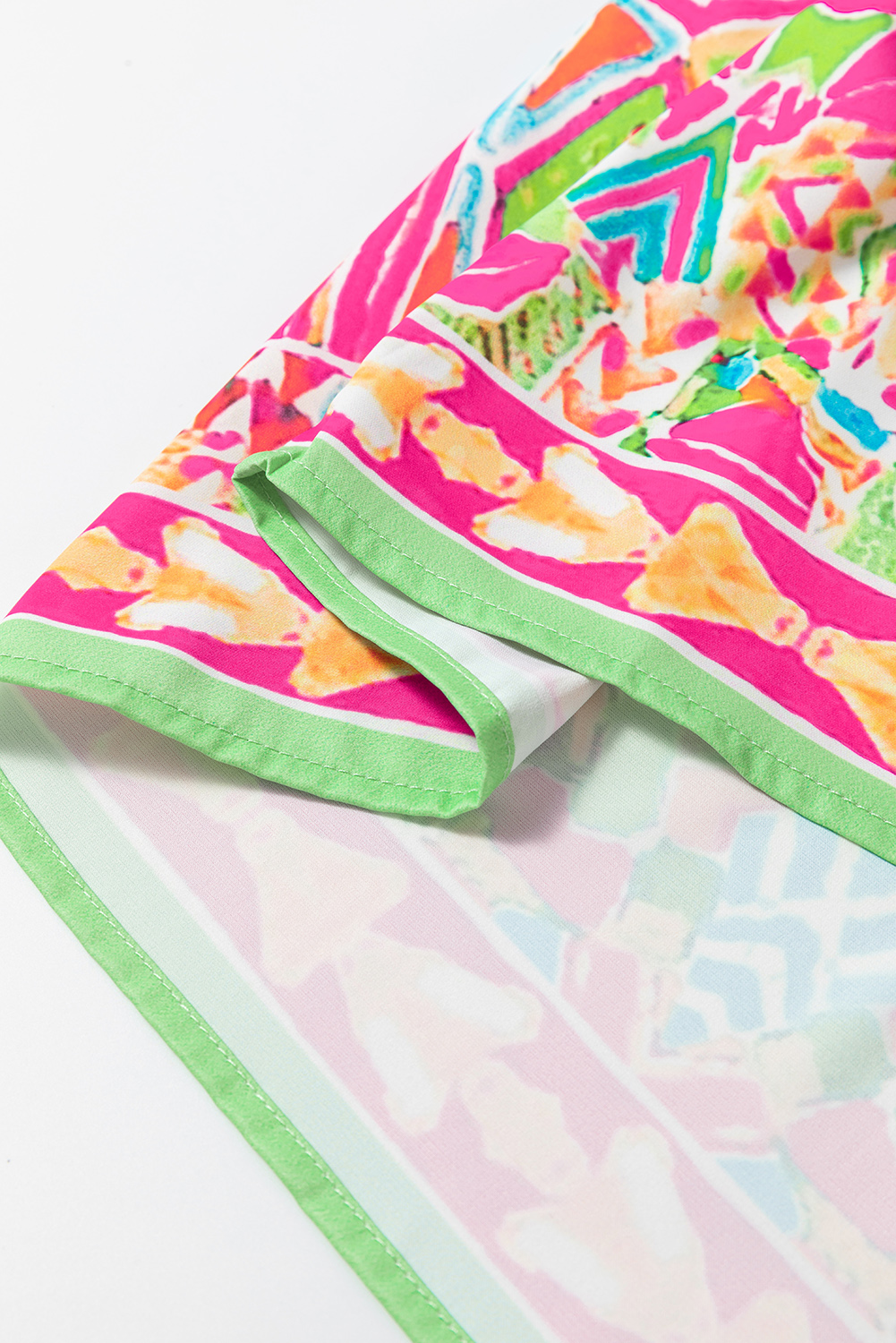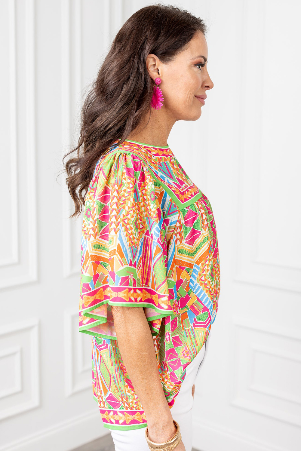 Orange Geometric Print Bell Sleeve O Neck Babydoll Blouse