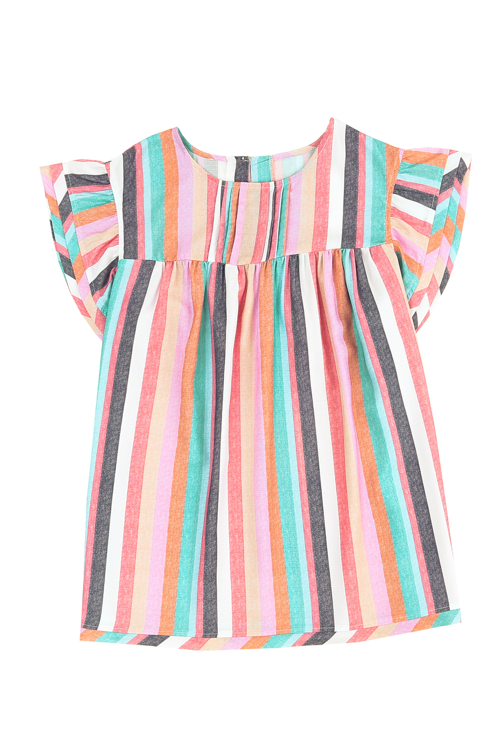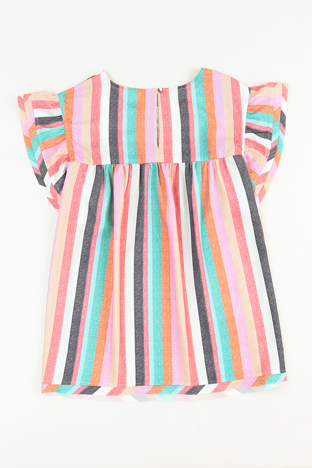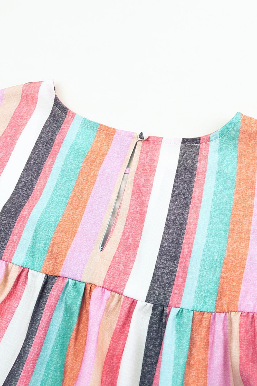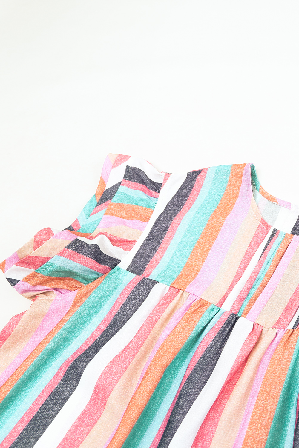 Multicolor Striped Tiered Ruffle Cap Sleeve Top