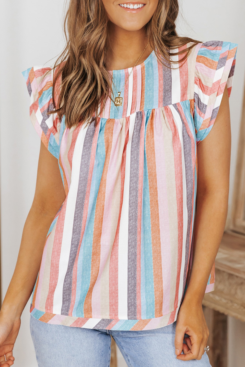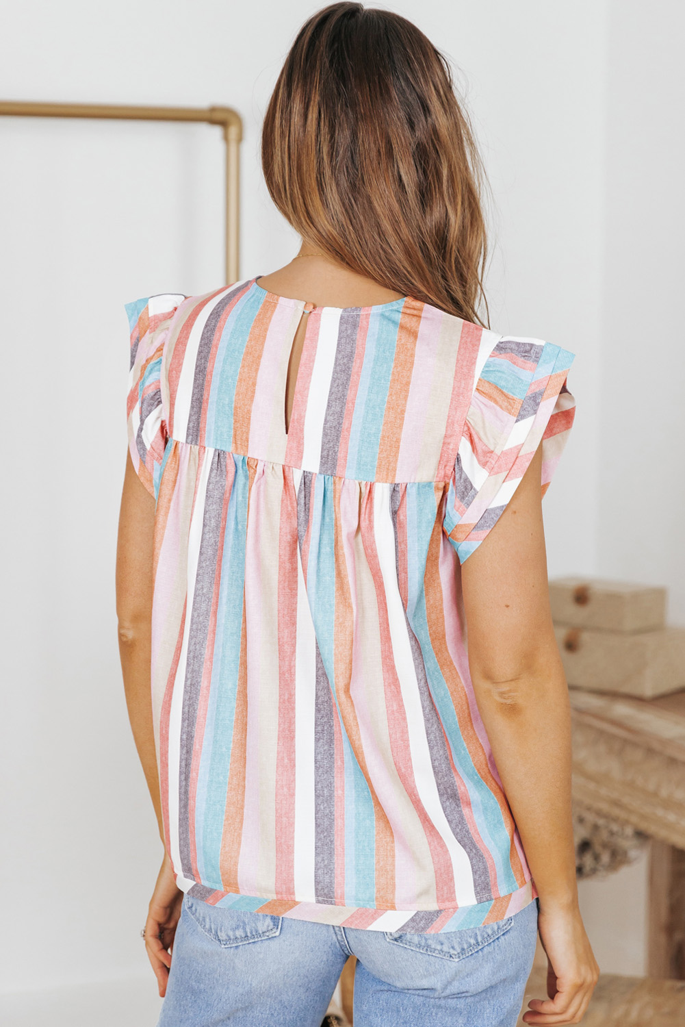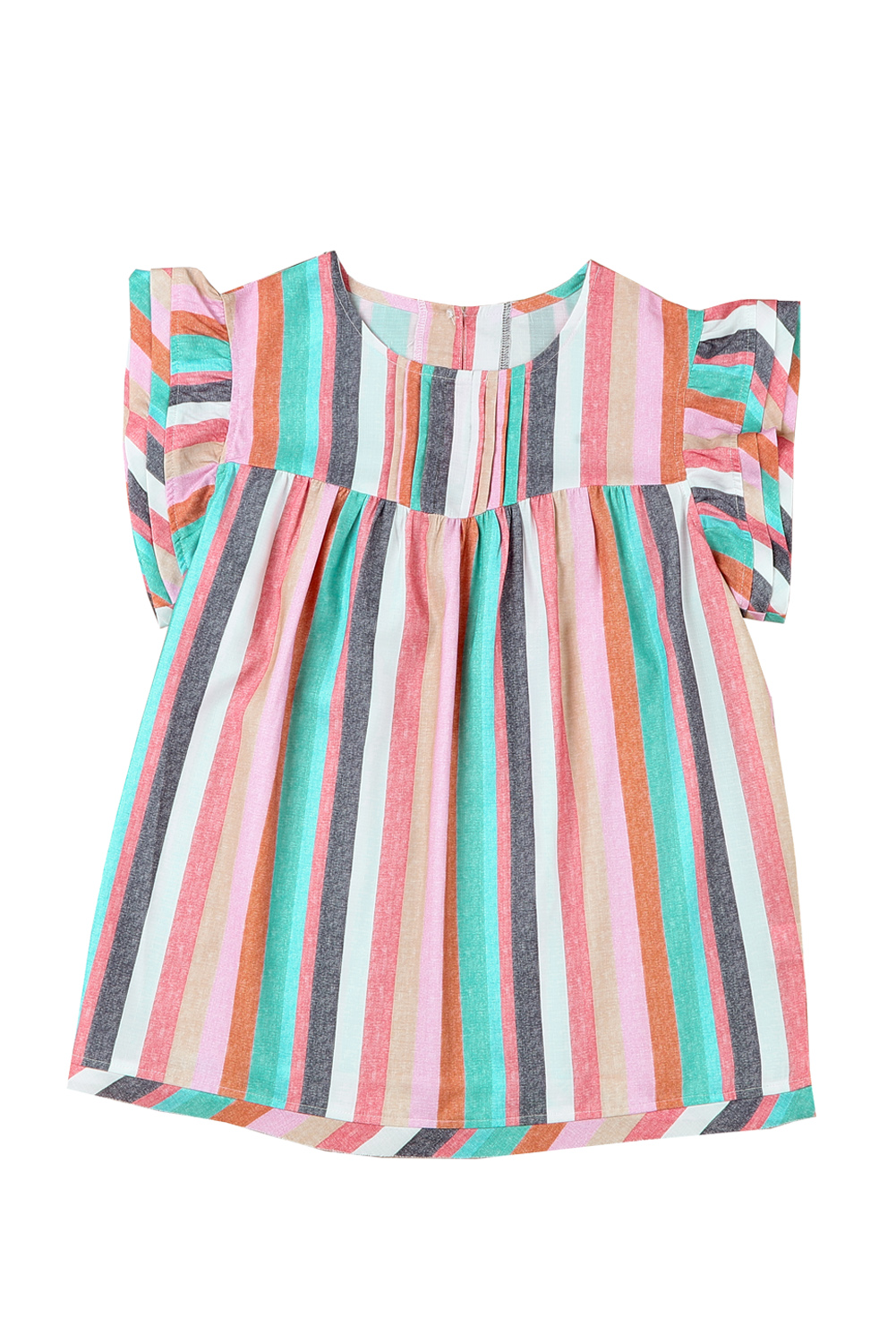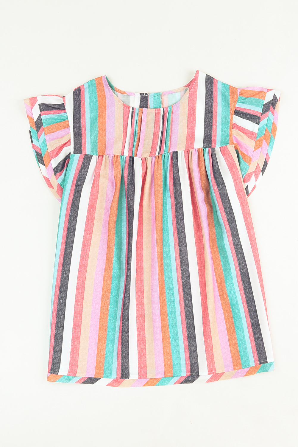 Multicolor Striped Tiered Ruffle Cap Sleeve Top