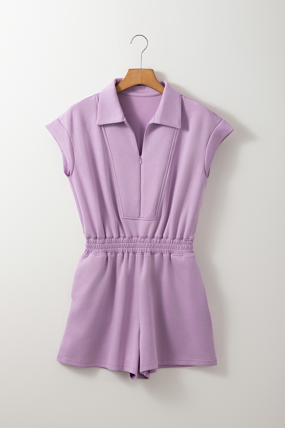 Orchid Bouquet Short Sleeve Zipper Collared Elastic High Waist Romper