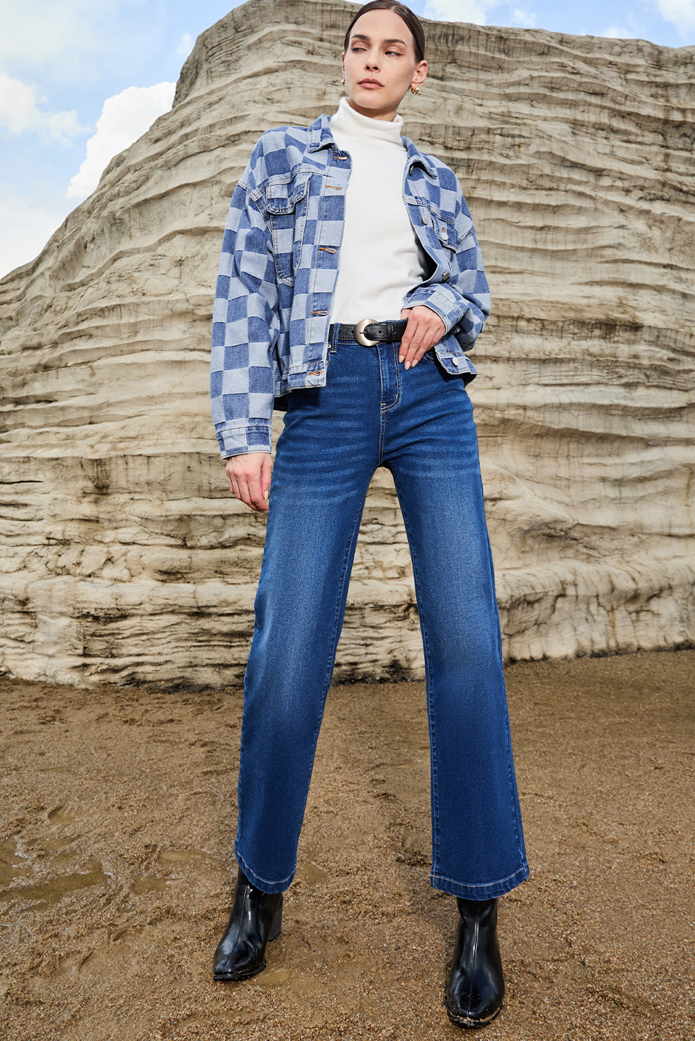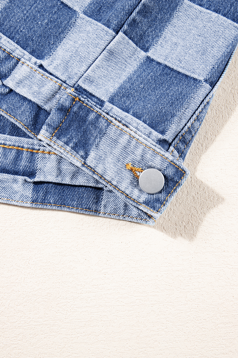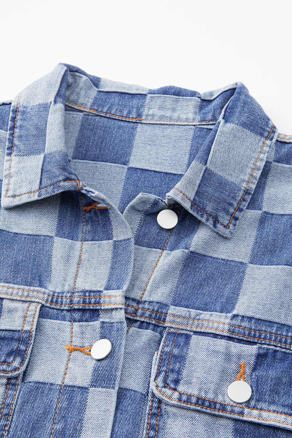 Light Blue Checkered Patchwork Button up Denim Jacket