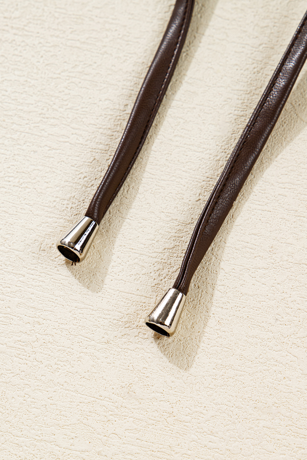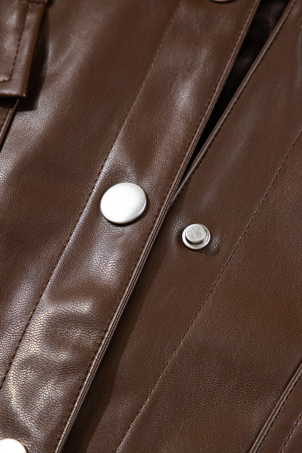 Chicory Coffee Double Flap Pocket Drawstring Hem Leather Jacket
