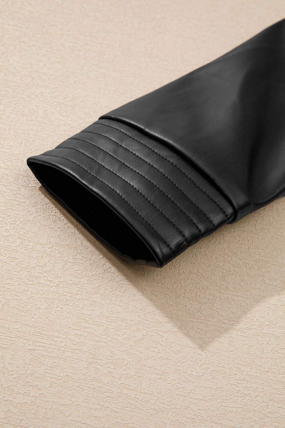 Black Solid Faux Leather Zipper Slim Fit Bomber Jacket