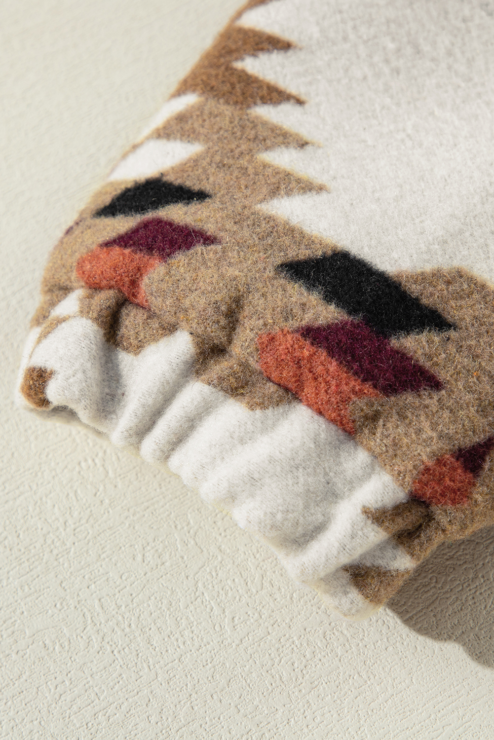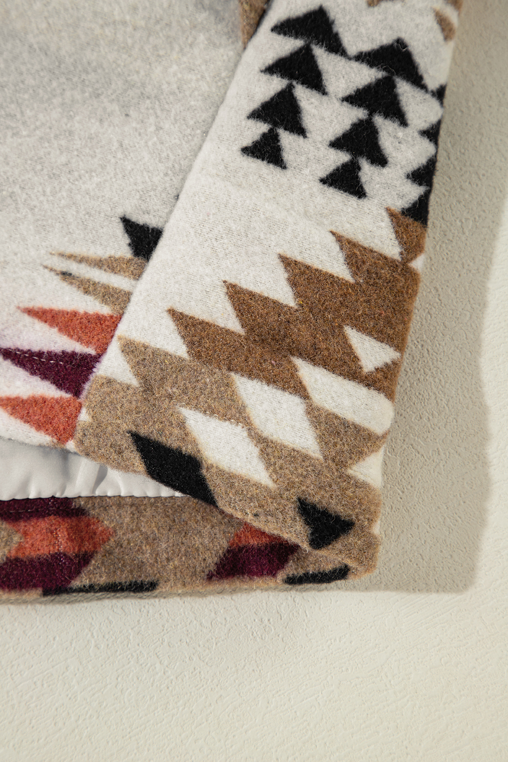 Beige Aztec Printed Stand Neck Zip Up Jacket