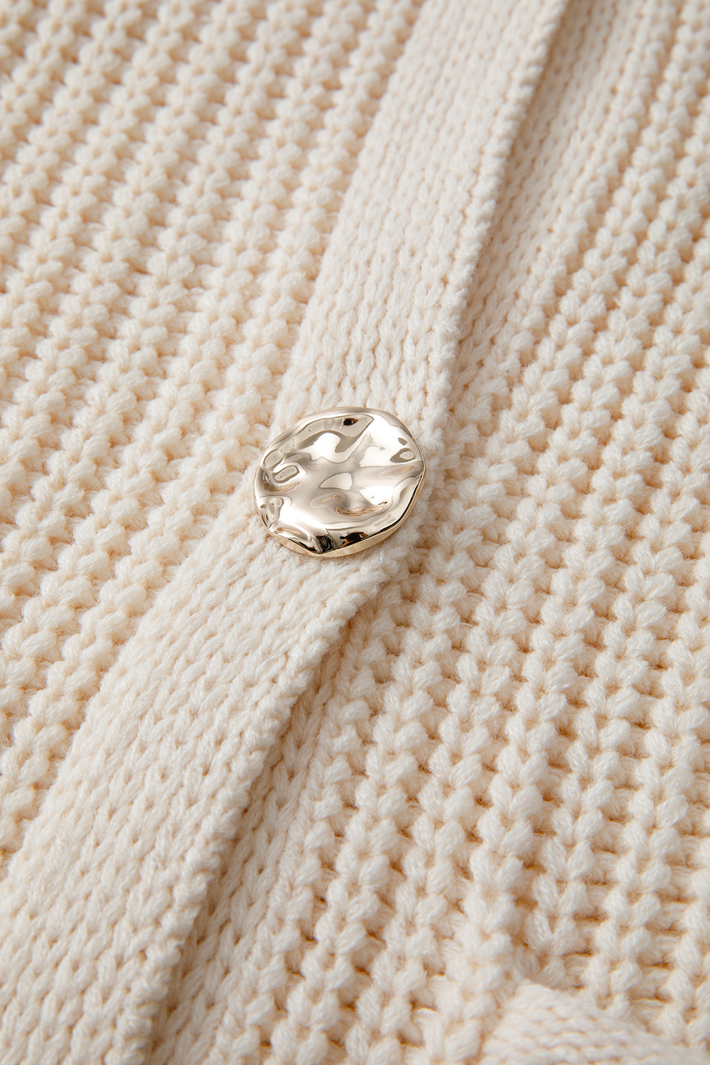 White Solid Textured Knit Side Pockets Buttoned Sweater Vest