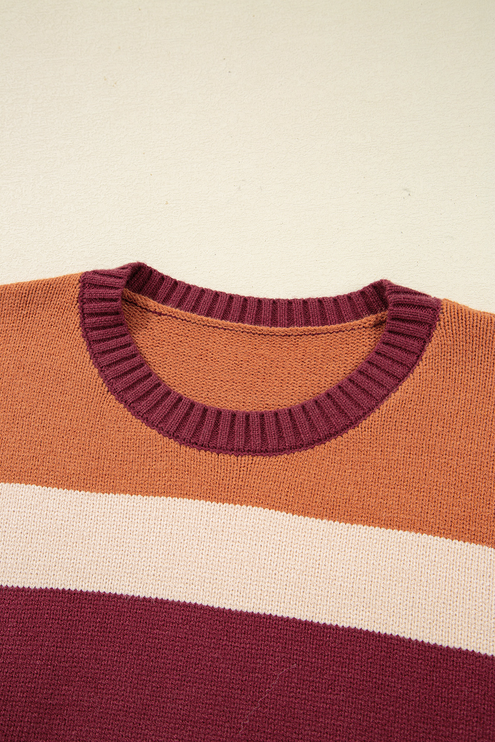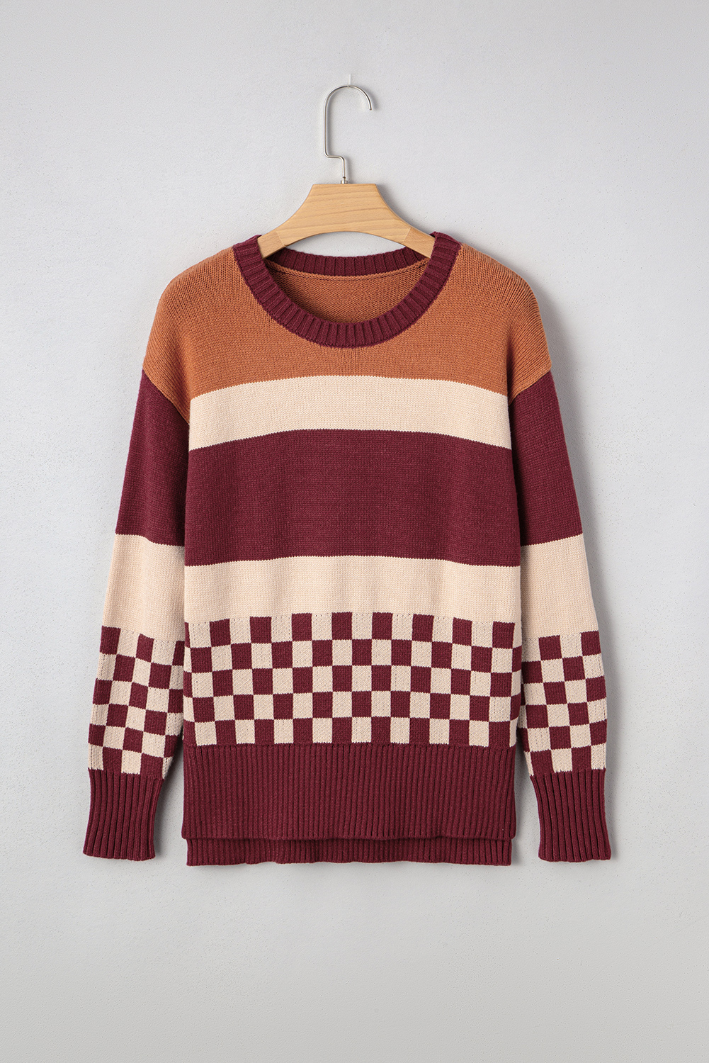 Brown Checkered Color Block Knitted Drop Shoulder Sweater