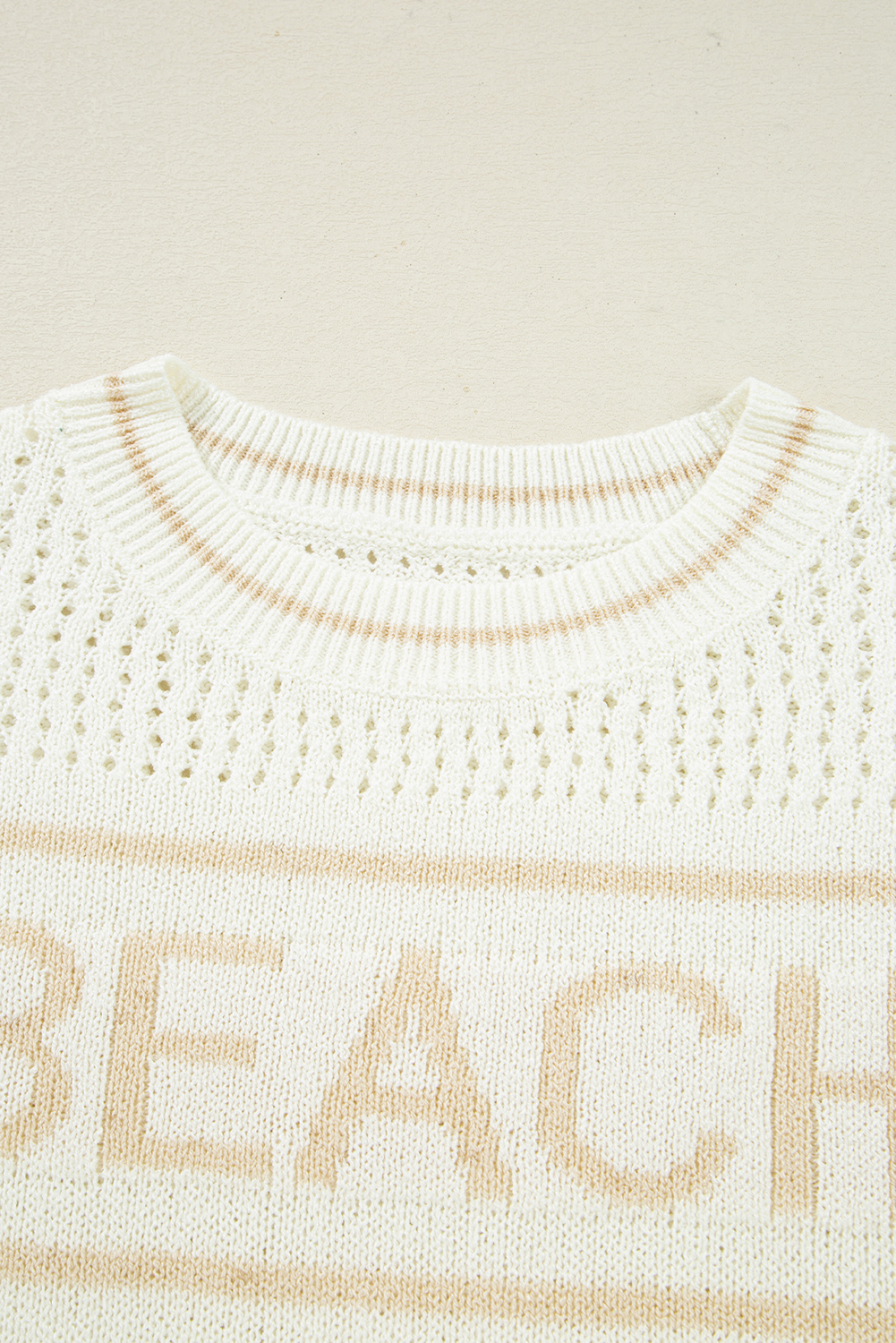 White BEACH Hollow Out Knitted Lightweight Dolman Sweater