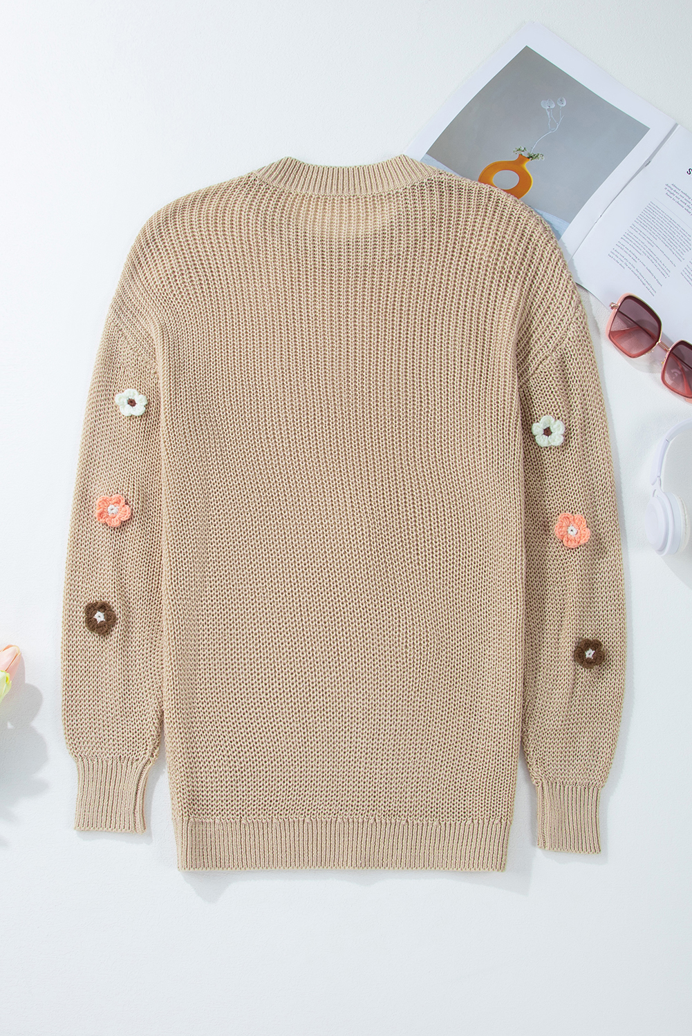 Parchment Hello Floral Embroidered Knit Loose Sweater