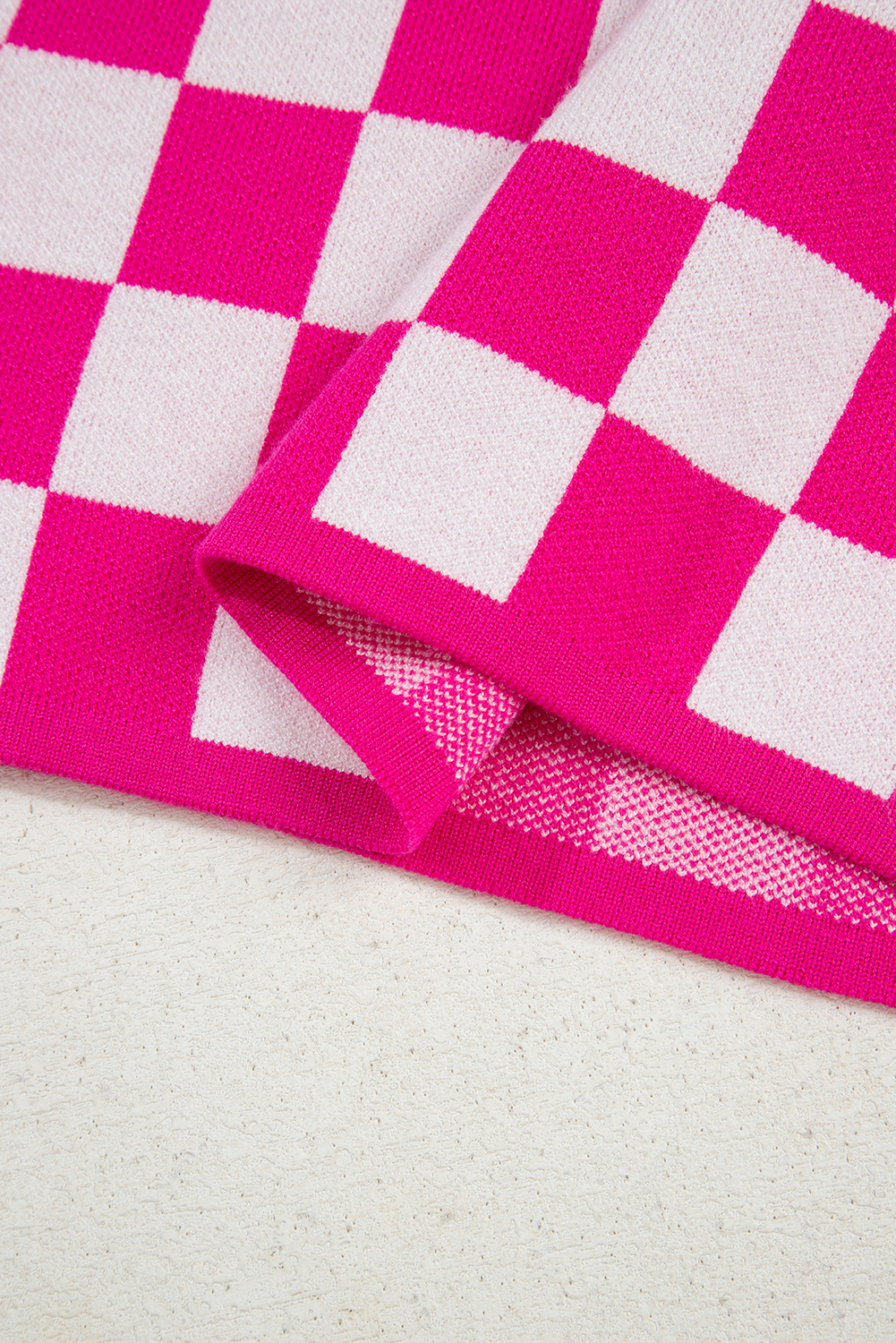 Rose Check Pattern Cap Sleeve Knitted Sweater