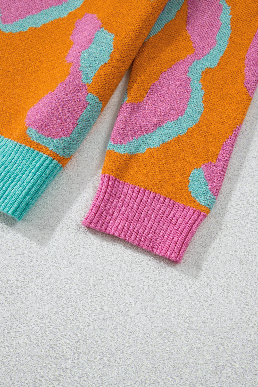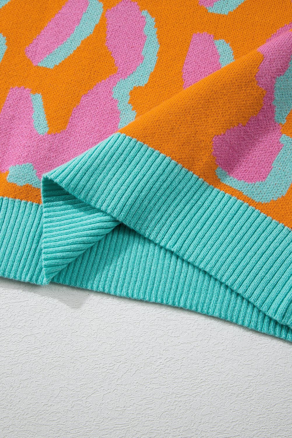 Orange Leopard Colorblock Ribbed Edge Sweater