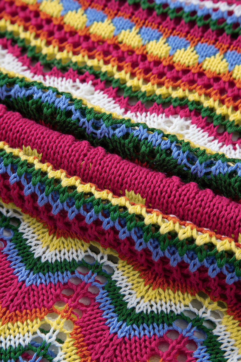 Rose Red Colorblock Striped Hollowed Knit Loose Sleeve Sweater