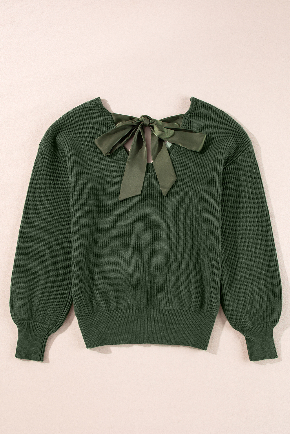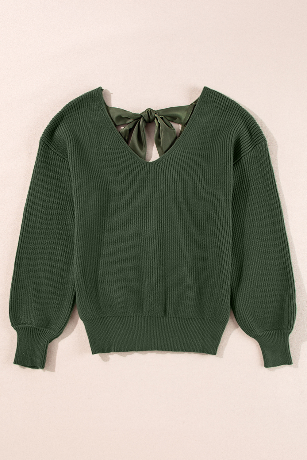 Jungle Green Lantern Sleeve V Neck Knot Back Sweater