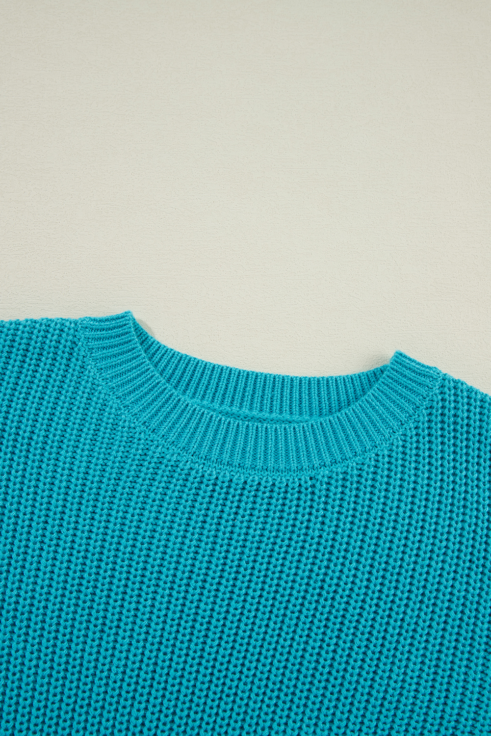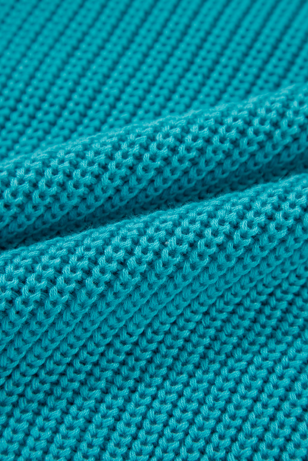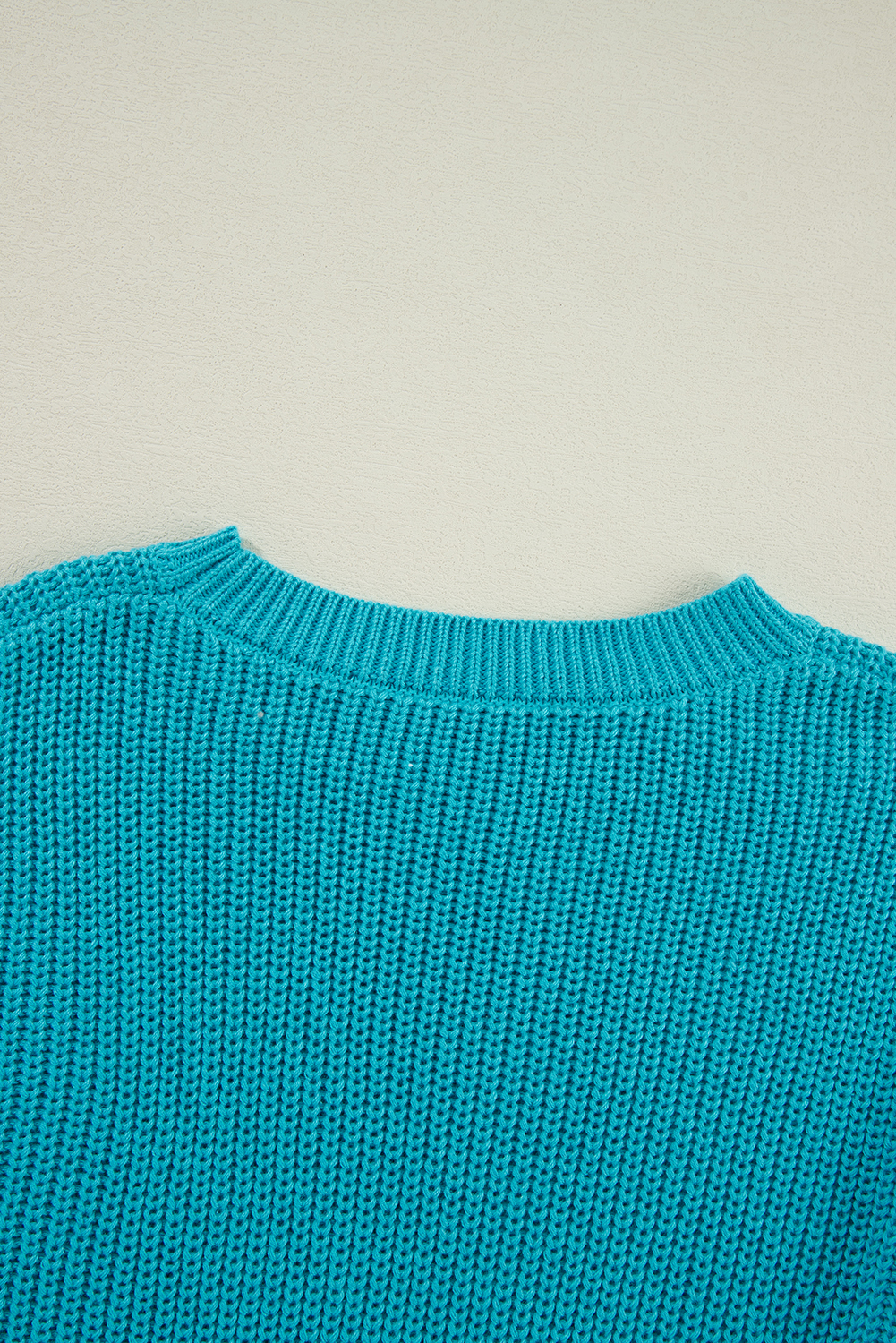 Turquoise Ruffled Eyelet Bubble Sleeve Sweater
