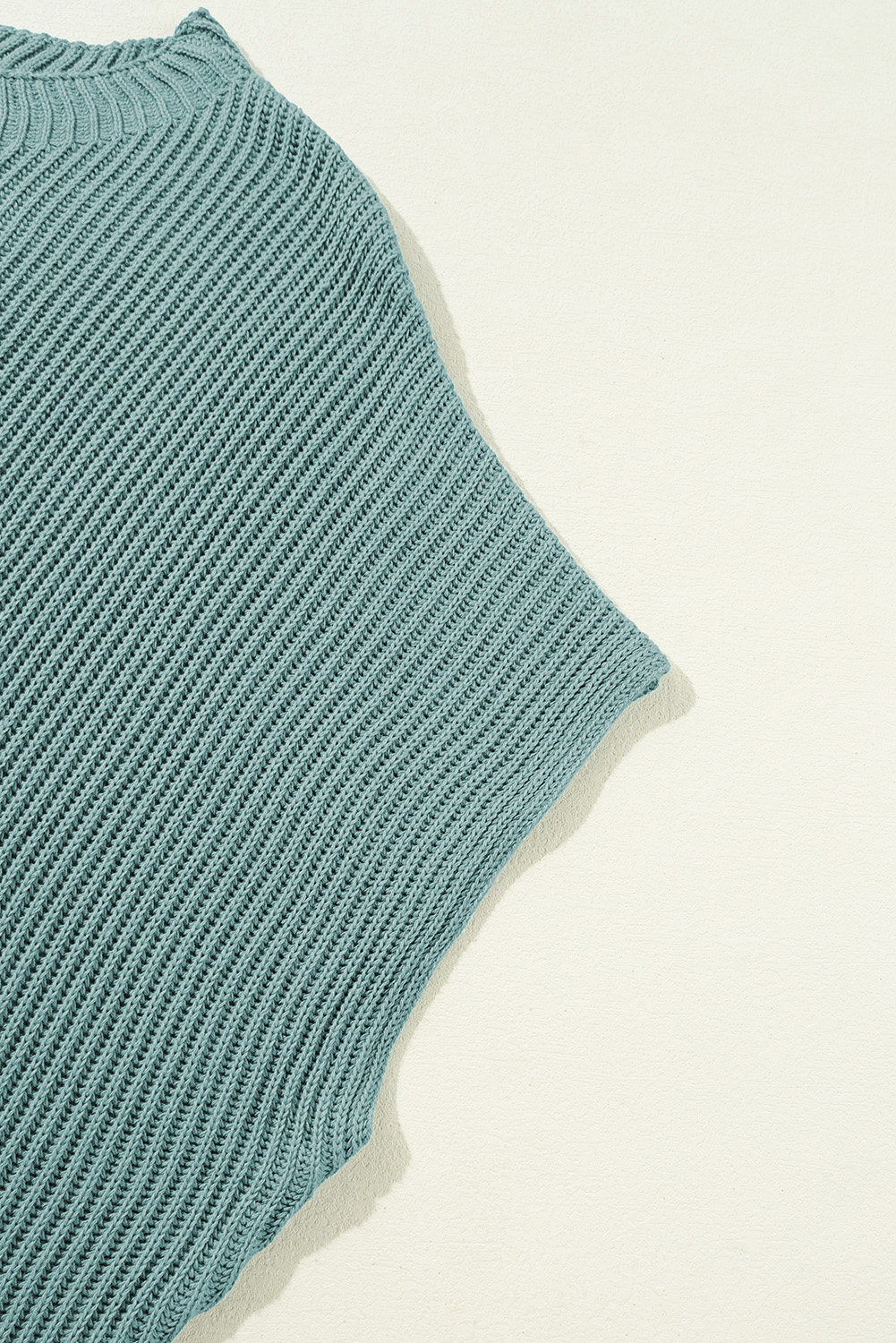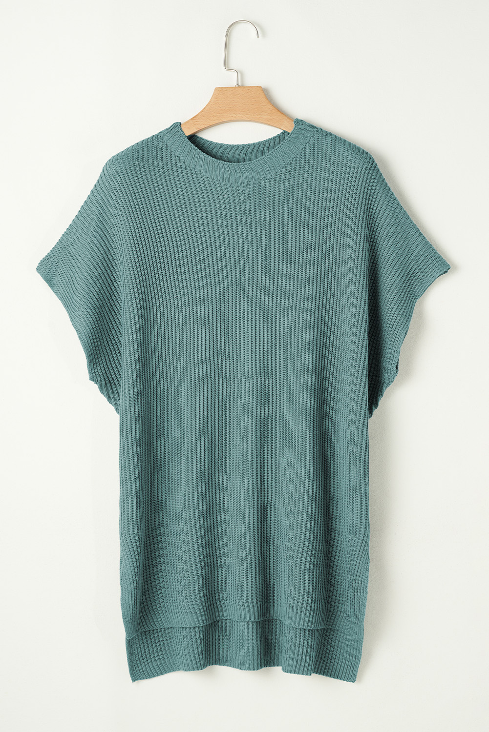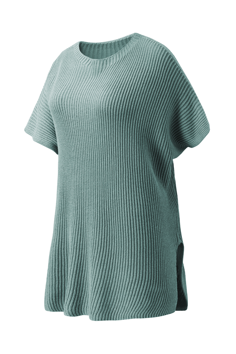 Haze Blue Short Sleeve Side Slit Oversized Sweater