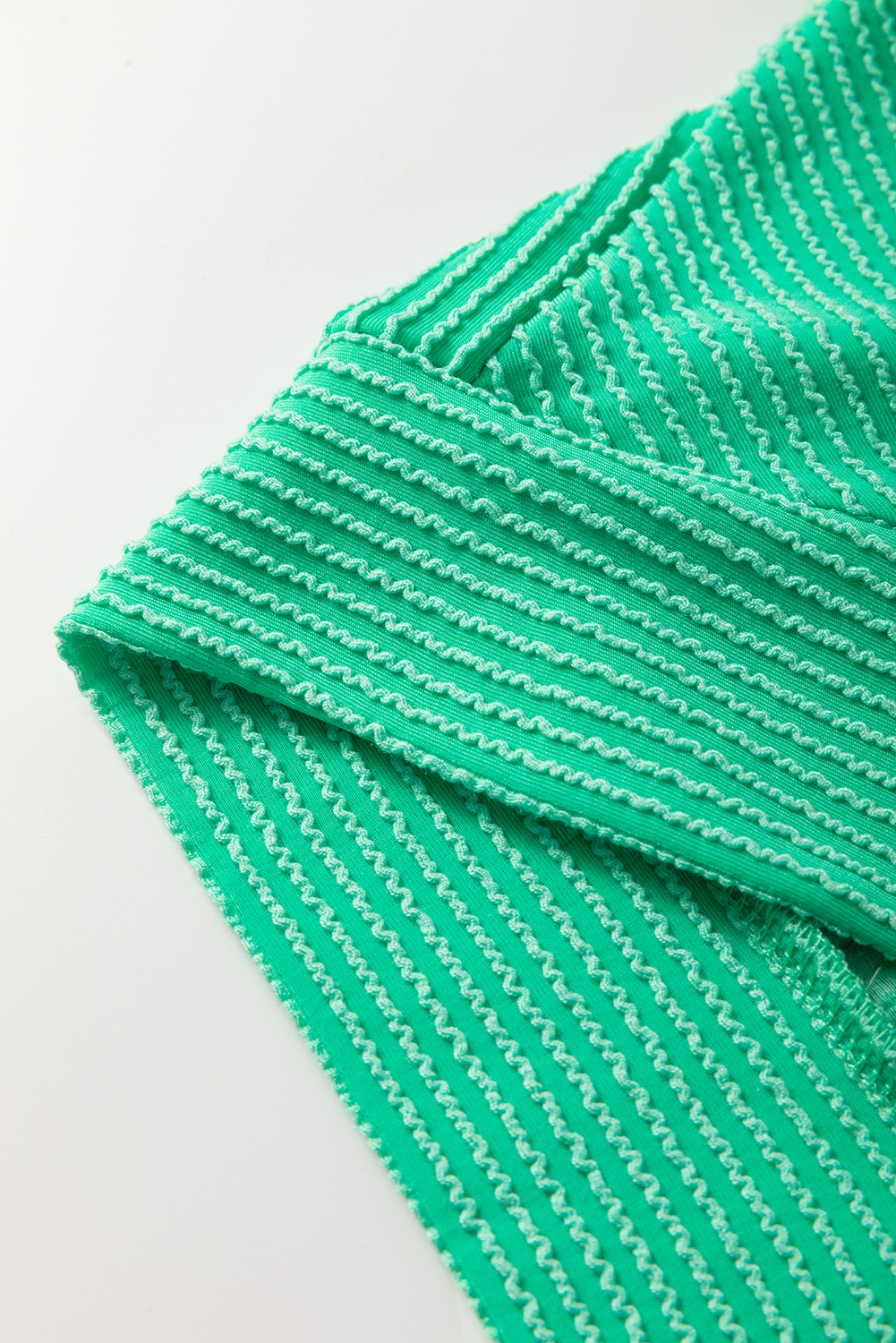 Bright Green Solid Corded Knit Short Sleeve T Shirt and Wide Leg Pants Set