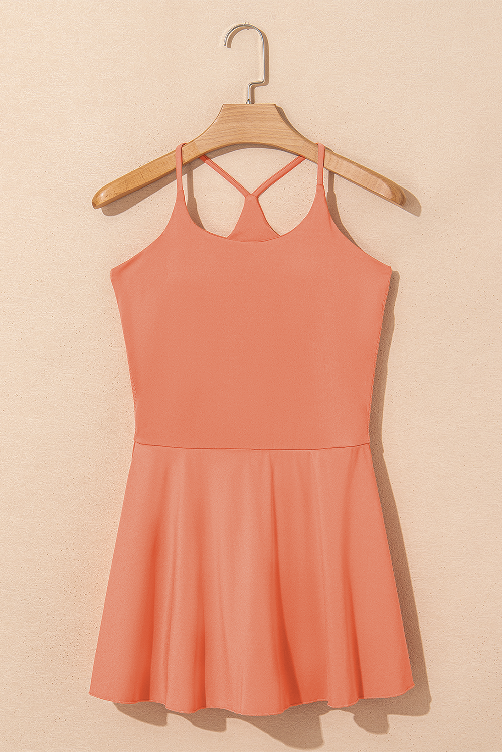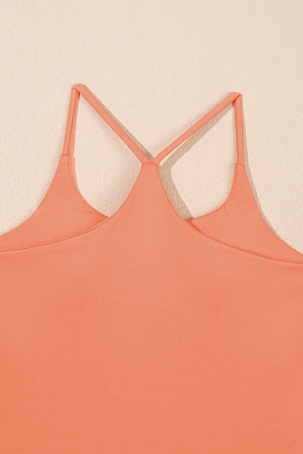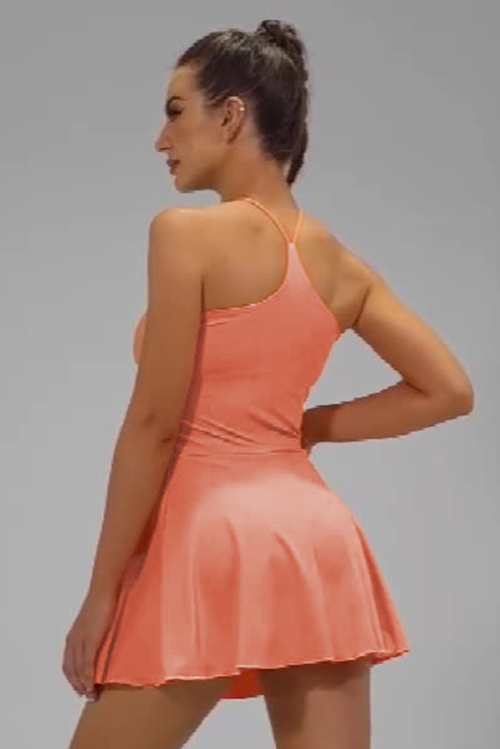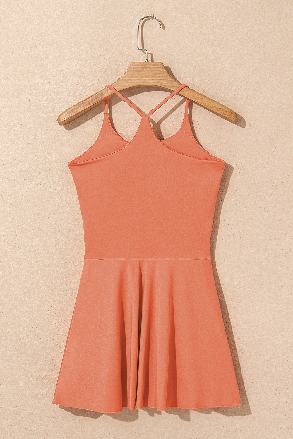 Grapefruit Orange Spaghetti Straps U Neck Pocketed Active Dress