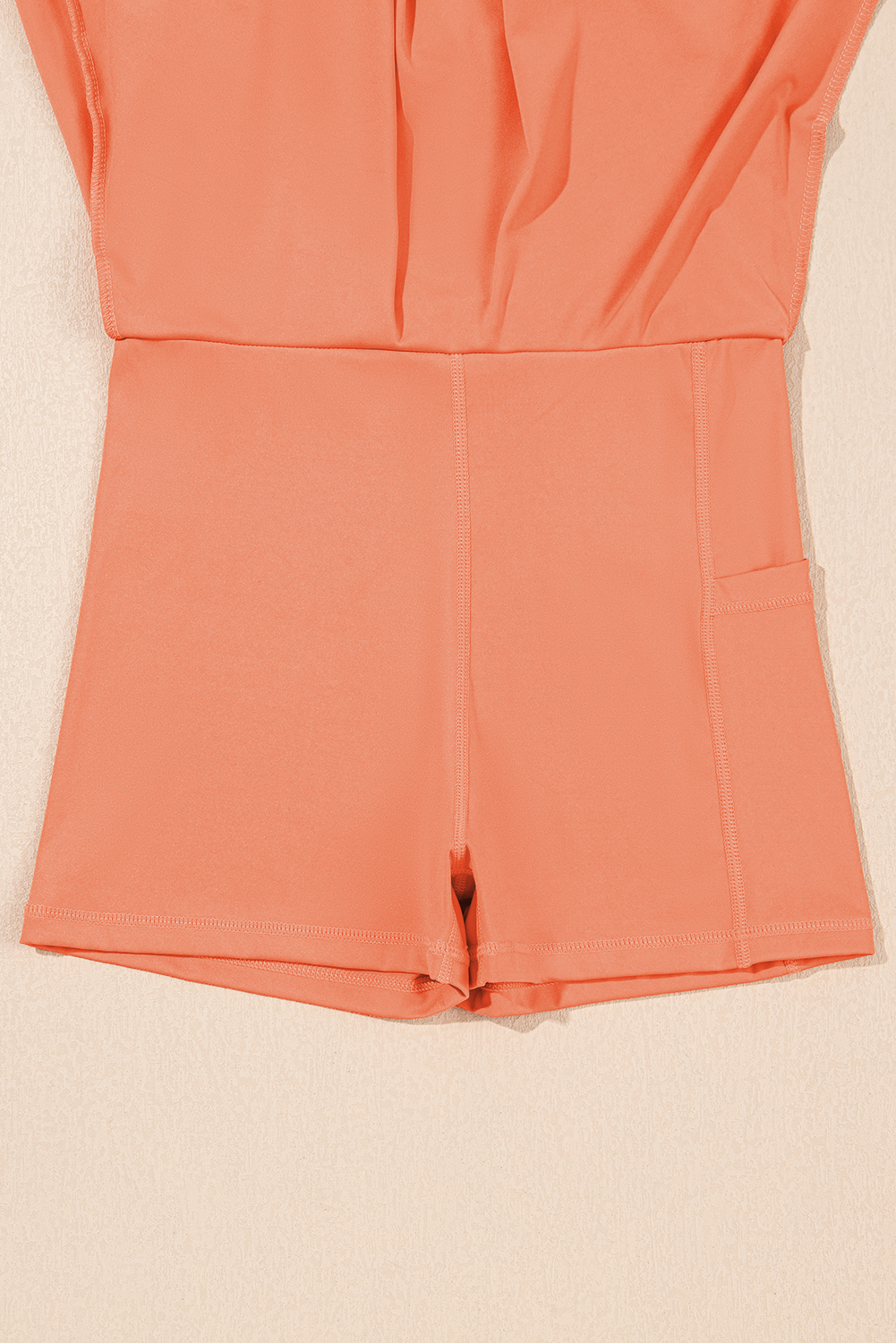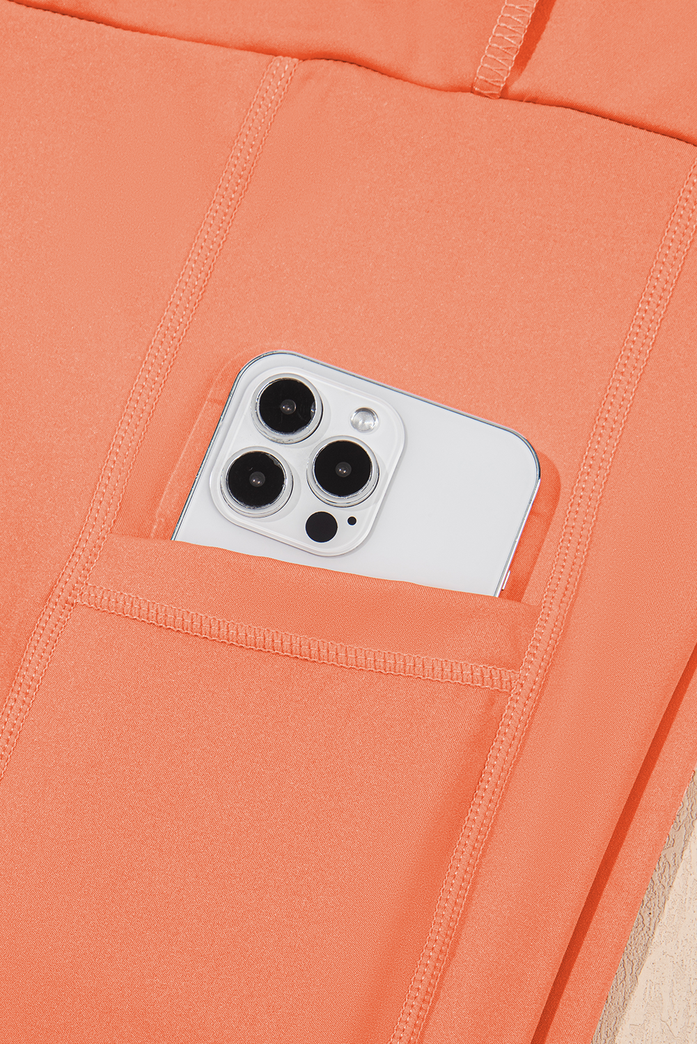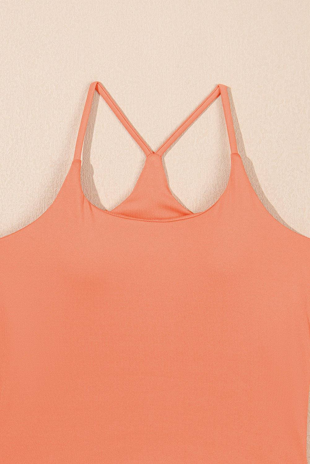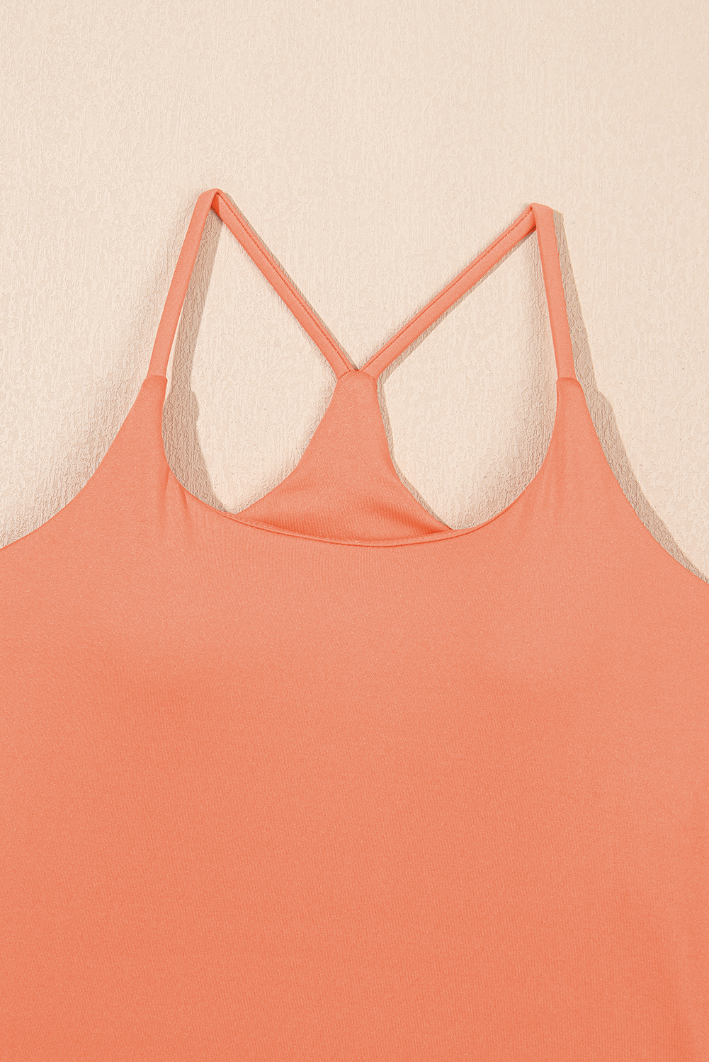Grapefruit Orange Spaghetti Straps U Neck Pocketed Active Dress