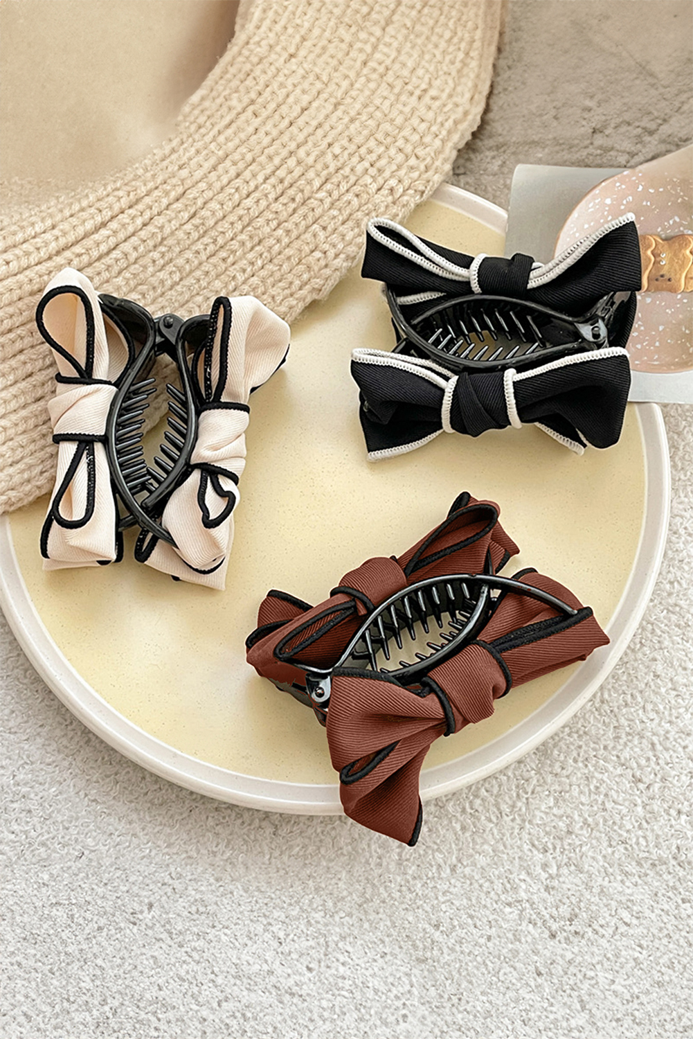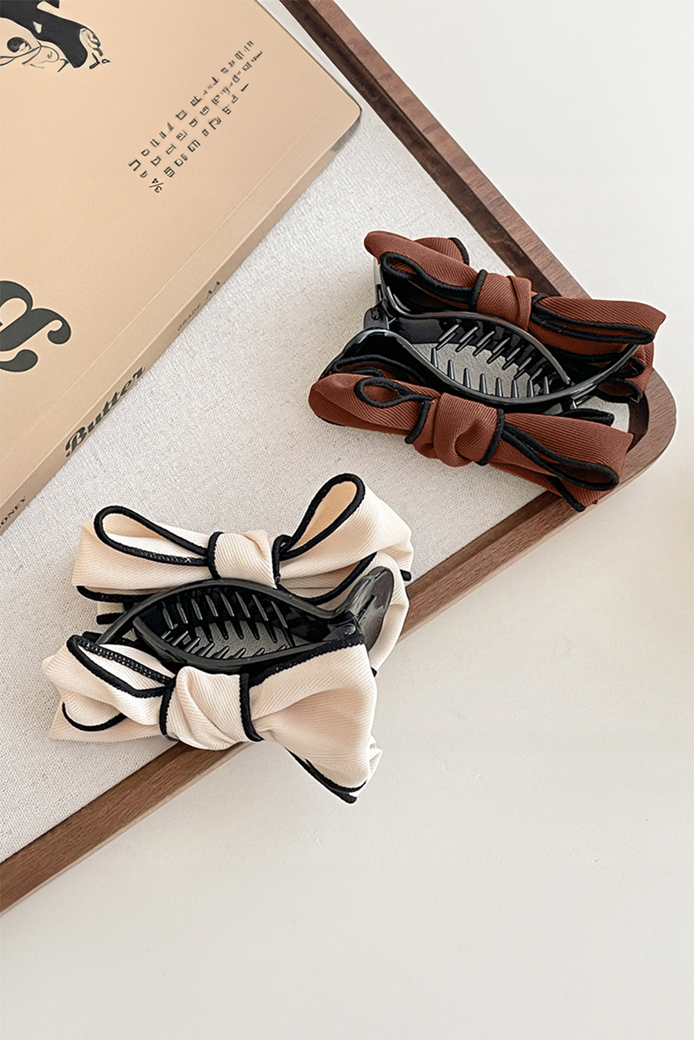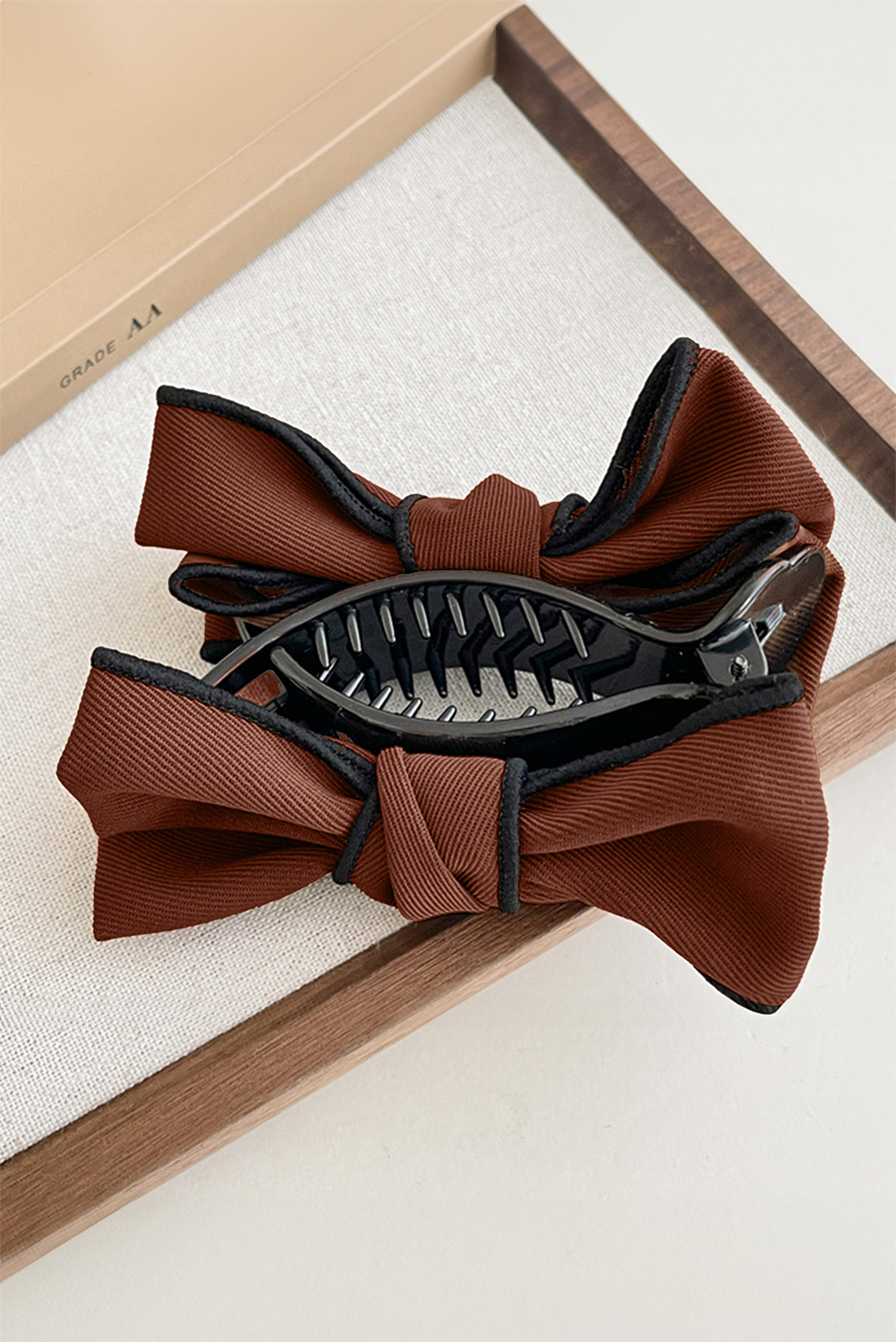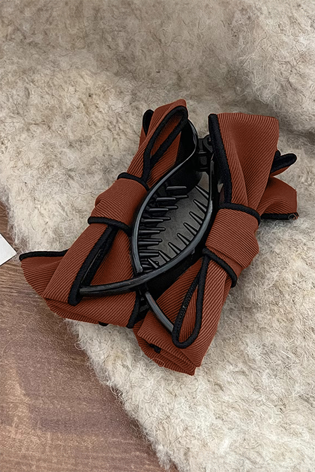 Chestnut Double Bow Decor Girlish Hair Claw Clip