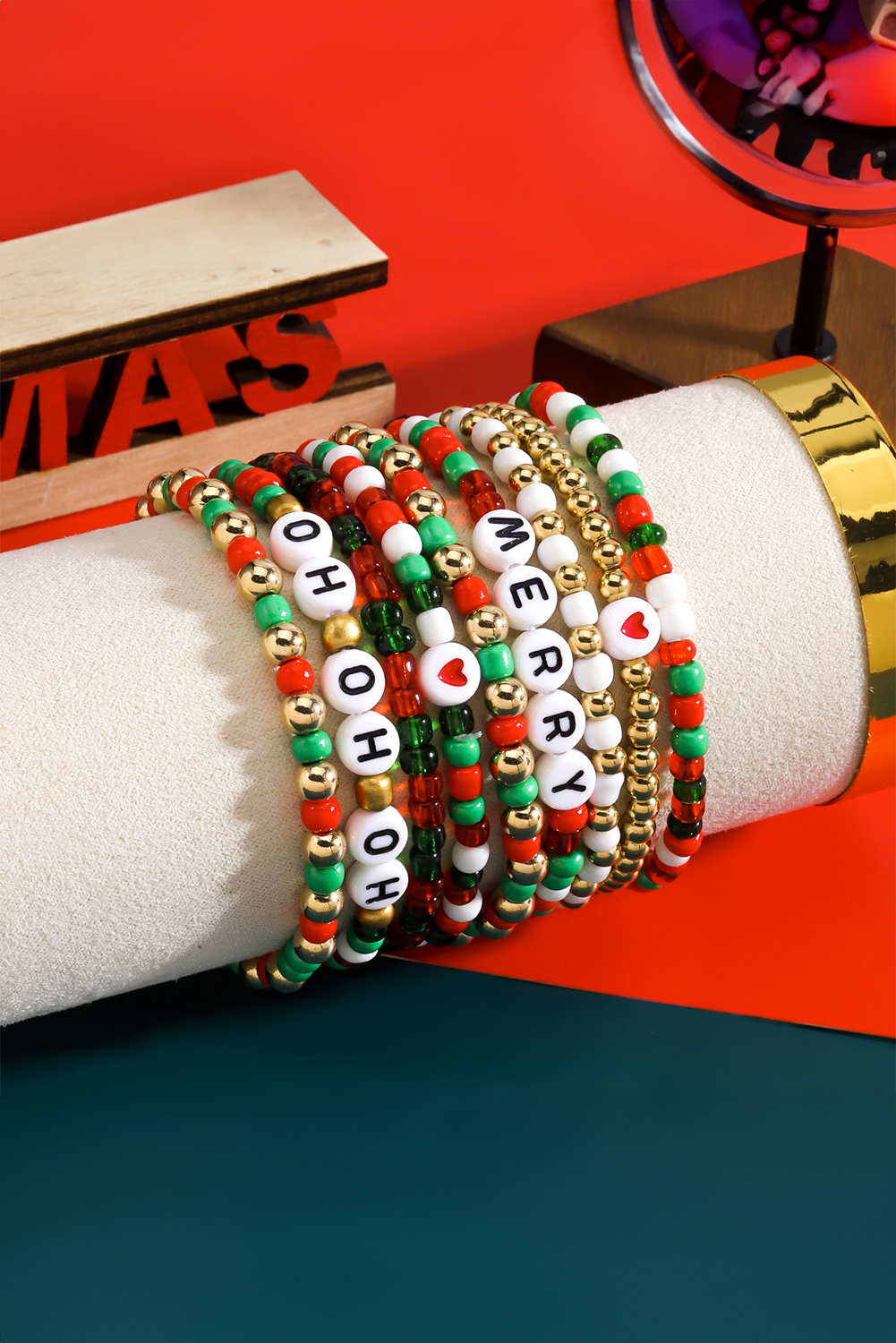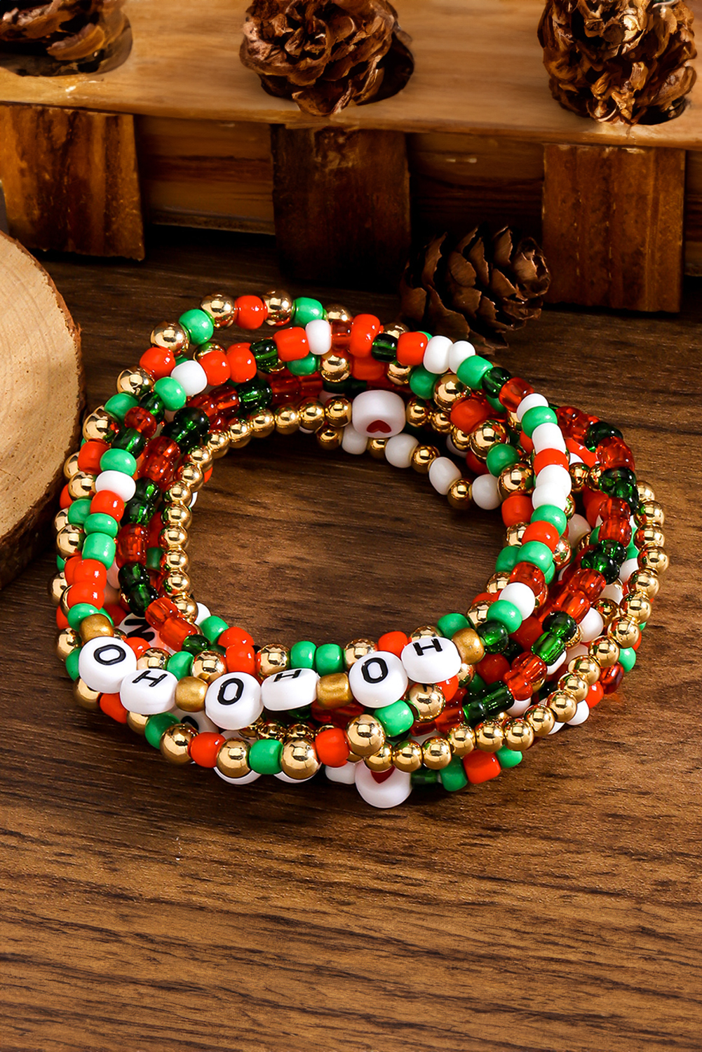 Fiery Red HO HO HO MERRY Beaded Multi-Layer Bracelet