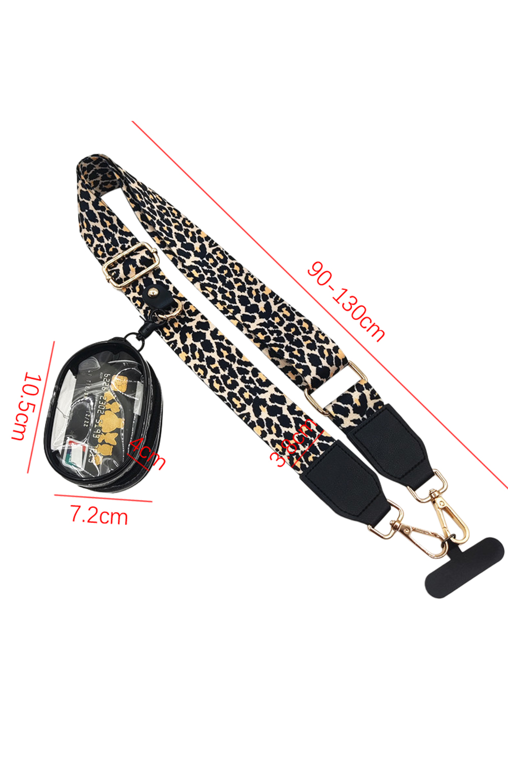 Black Leopard Adjustable Phone Hanging Shoulder Strap with Pouch