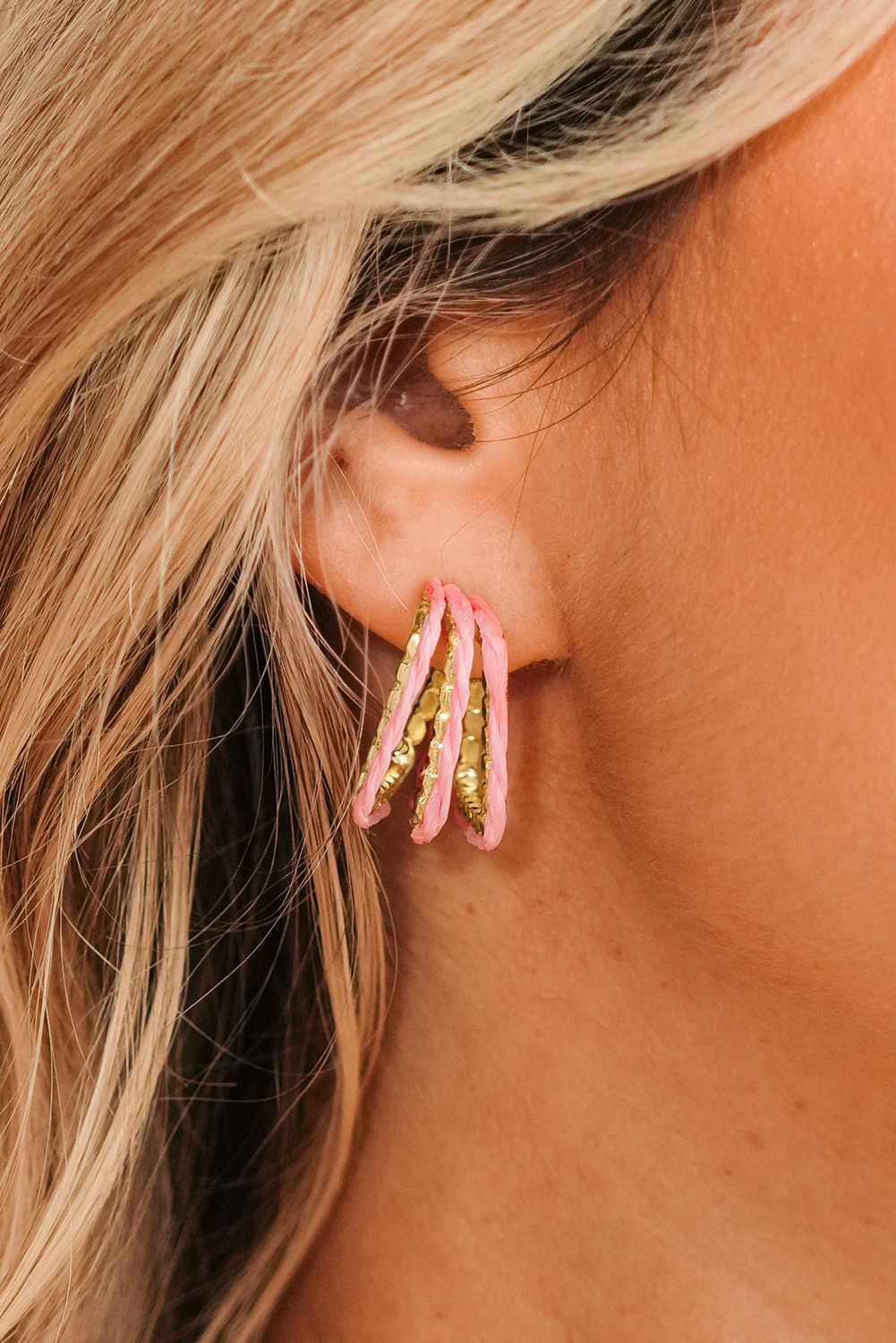 Pink Rattan Detail Gold Plated Alloy Earrings