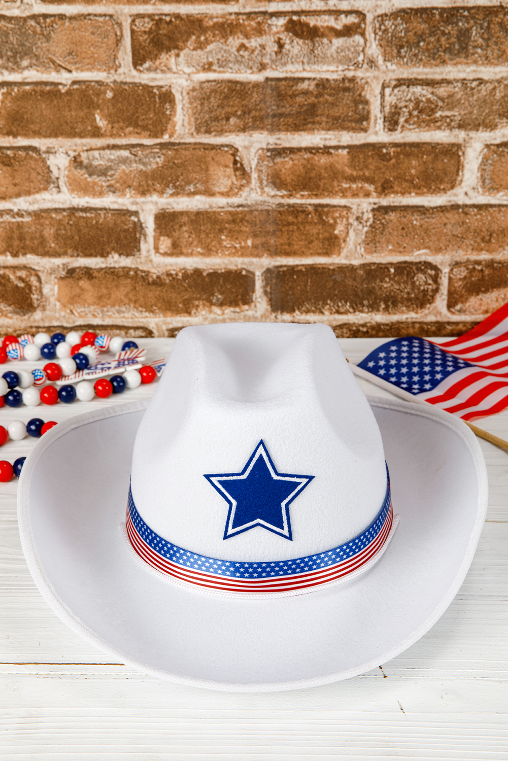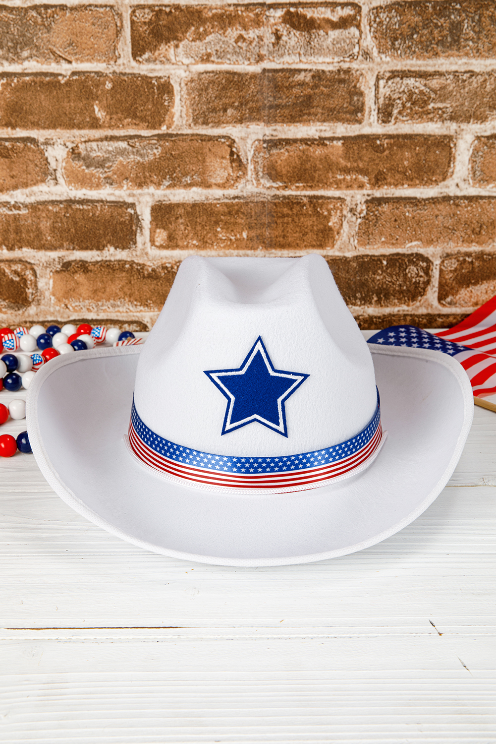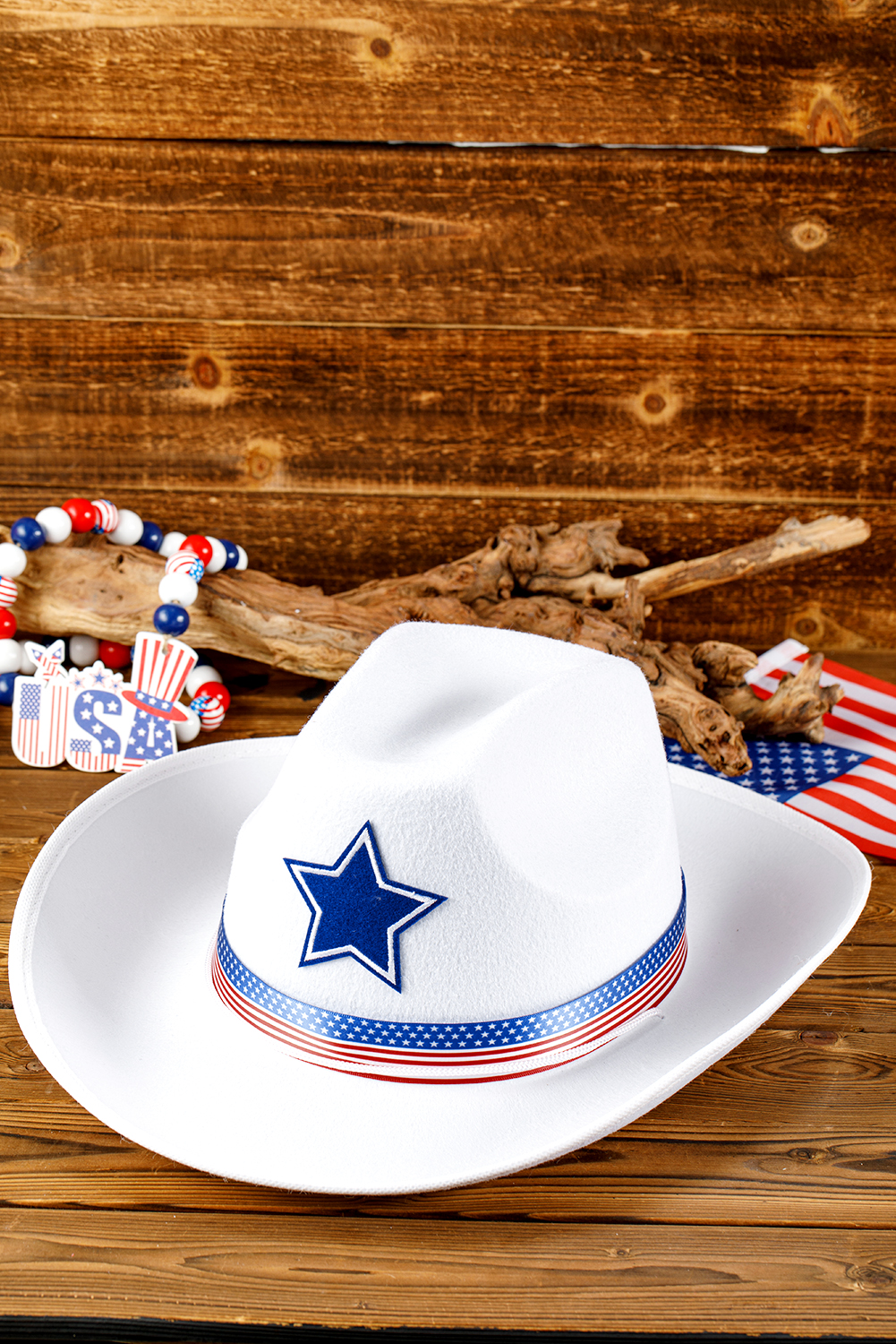 White American Flag Theme Print Wide Brim Cowboy Hat