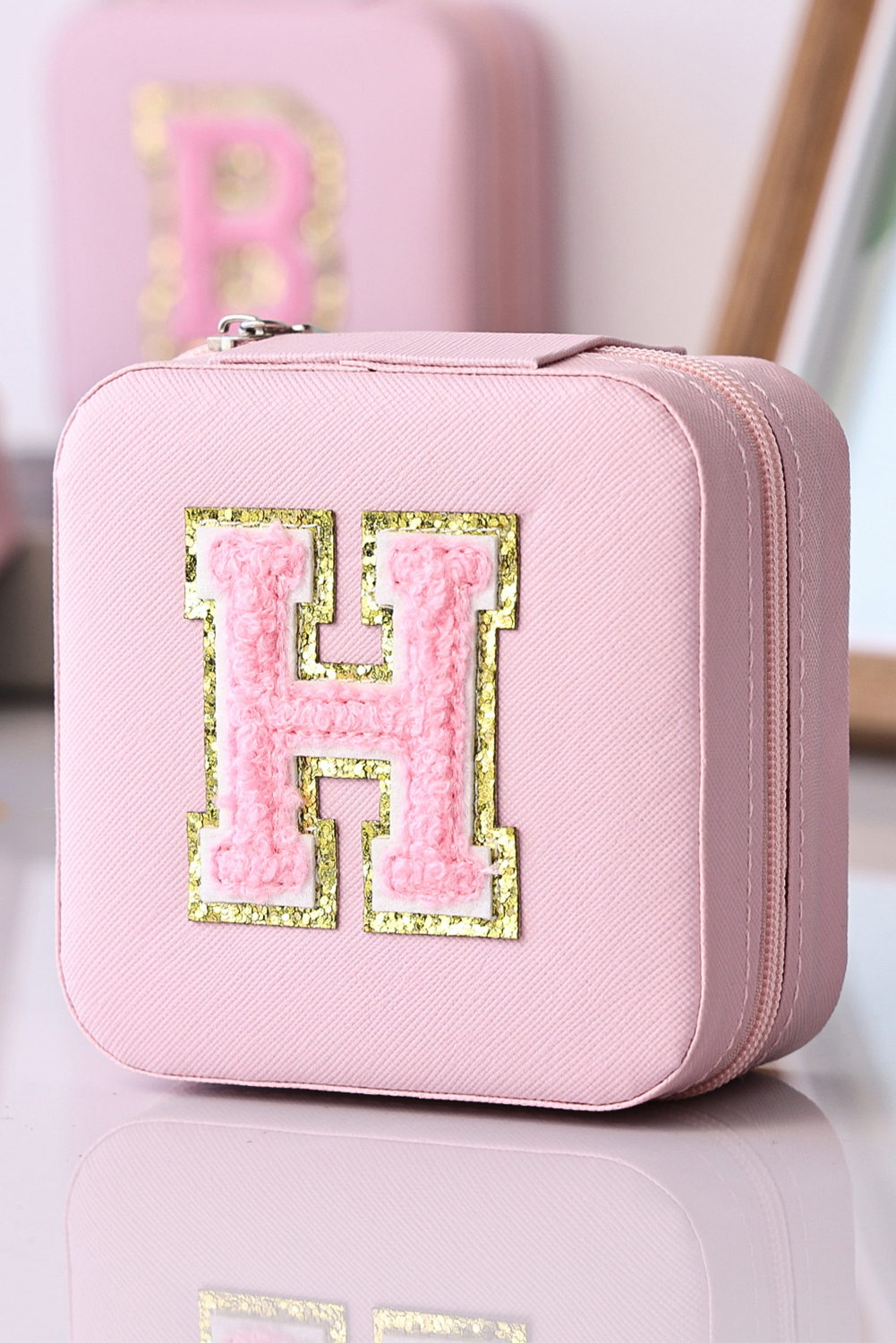 Pink H Chenille Letter Jewelry Organizer Box