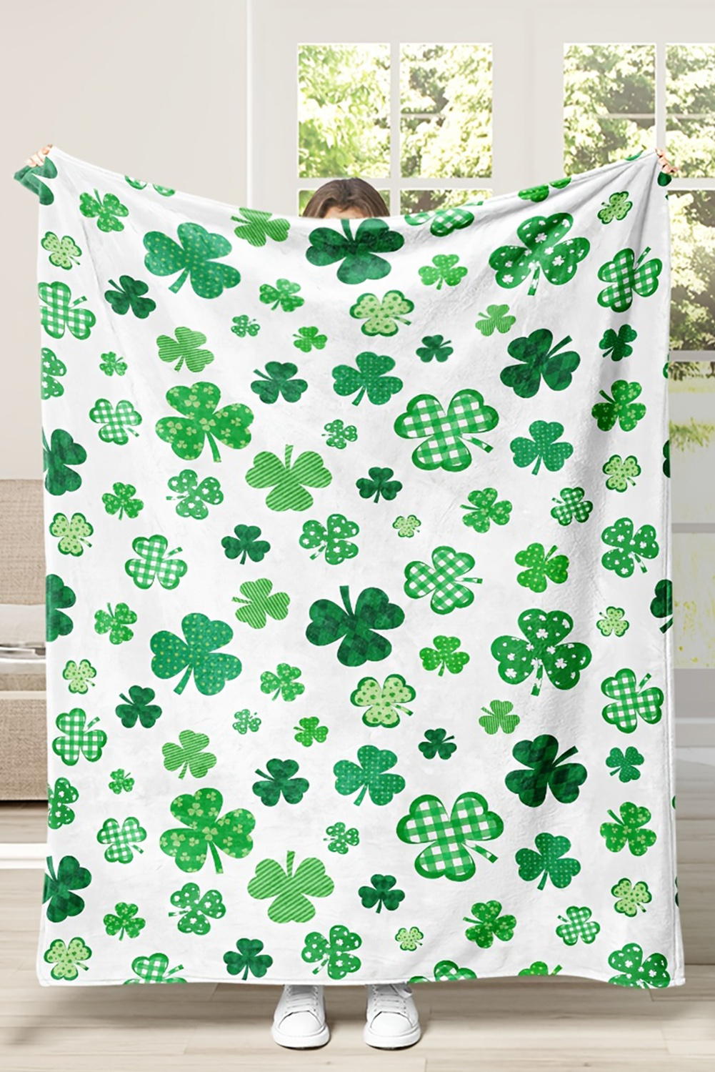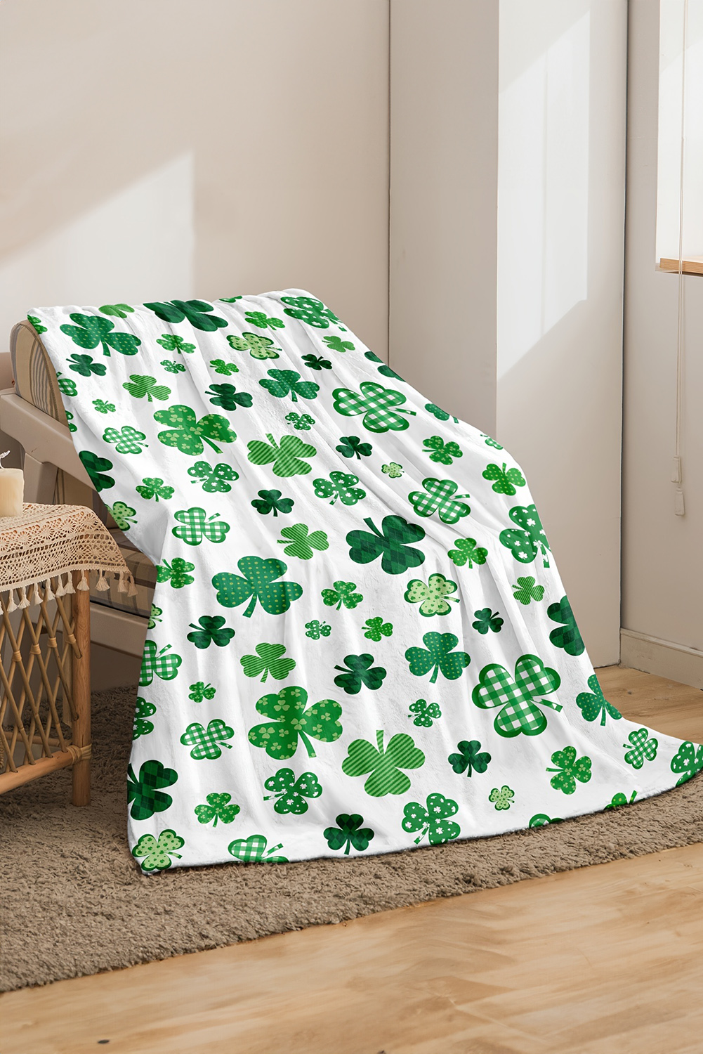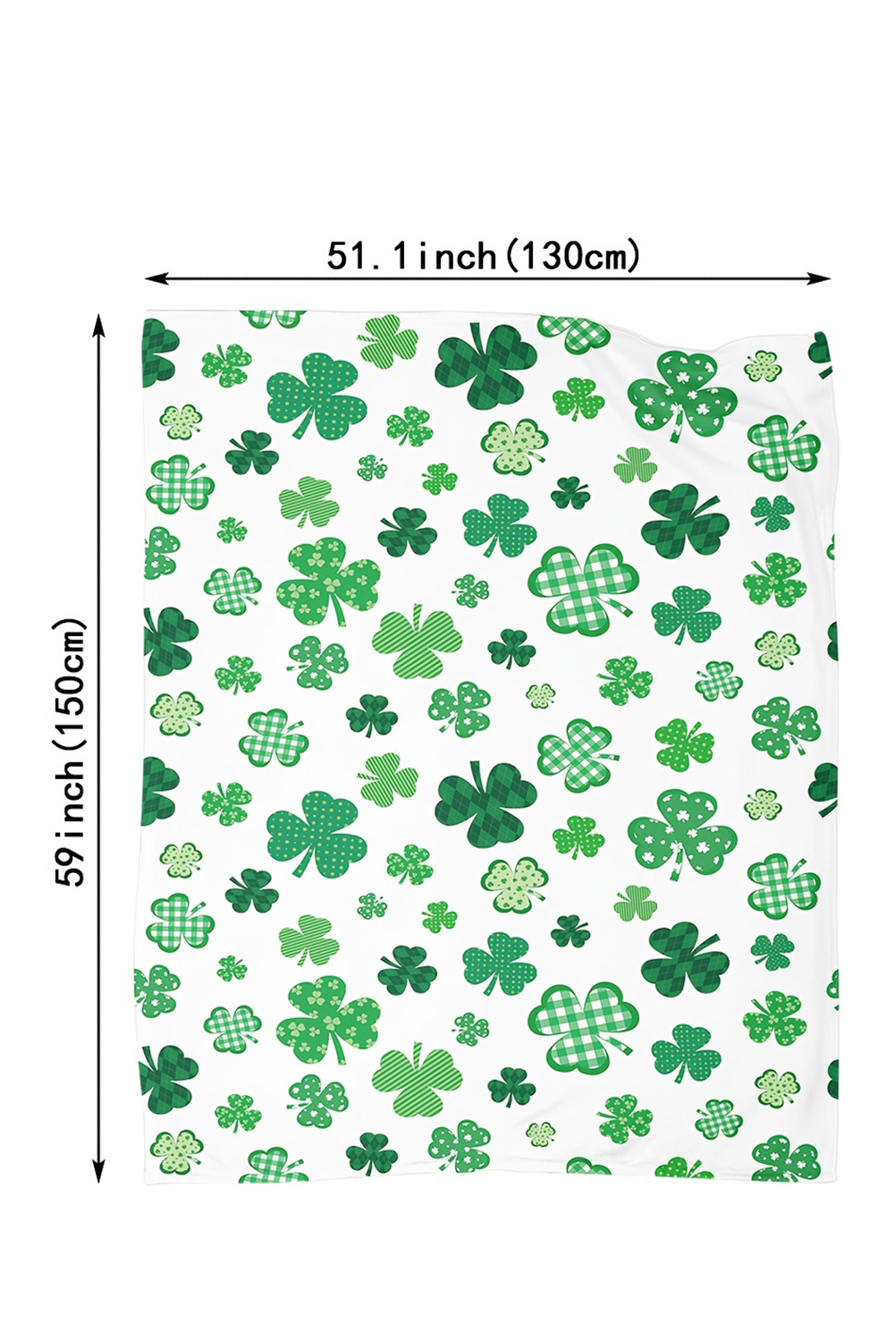 White St. Patrick Clover Print Nap Blanket 130*150cm